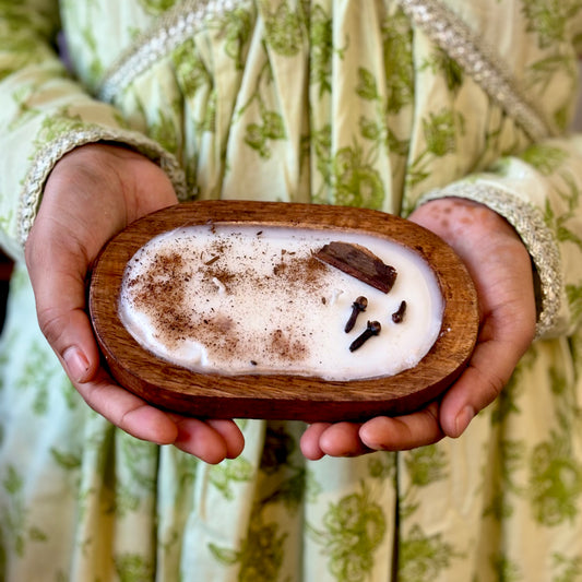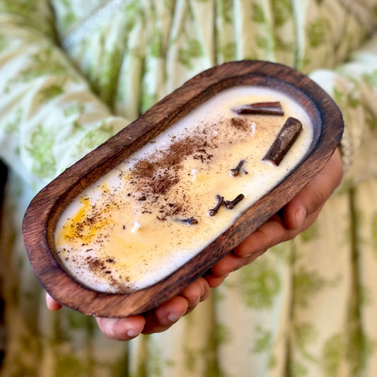Pumpkin Spice Wooden Dough Bowl Soy Candle