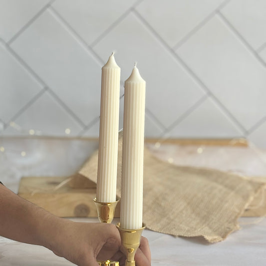 White Long Textured Taper Soy Candle | 12 Inches | Pack of 2