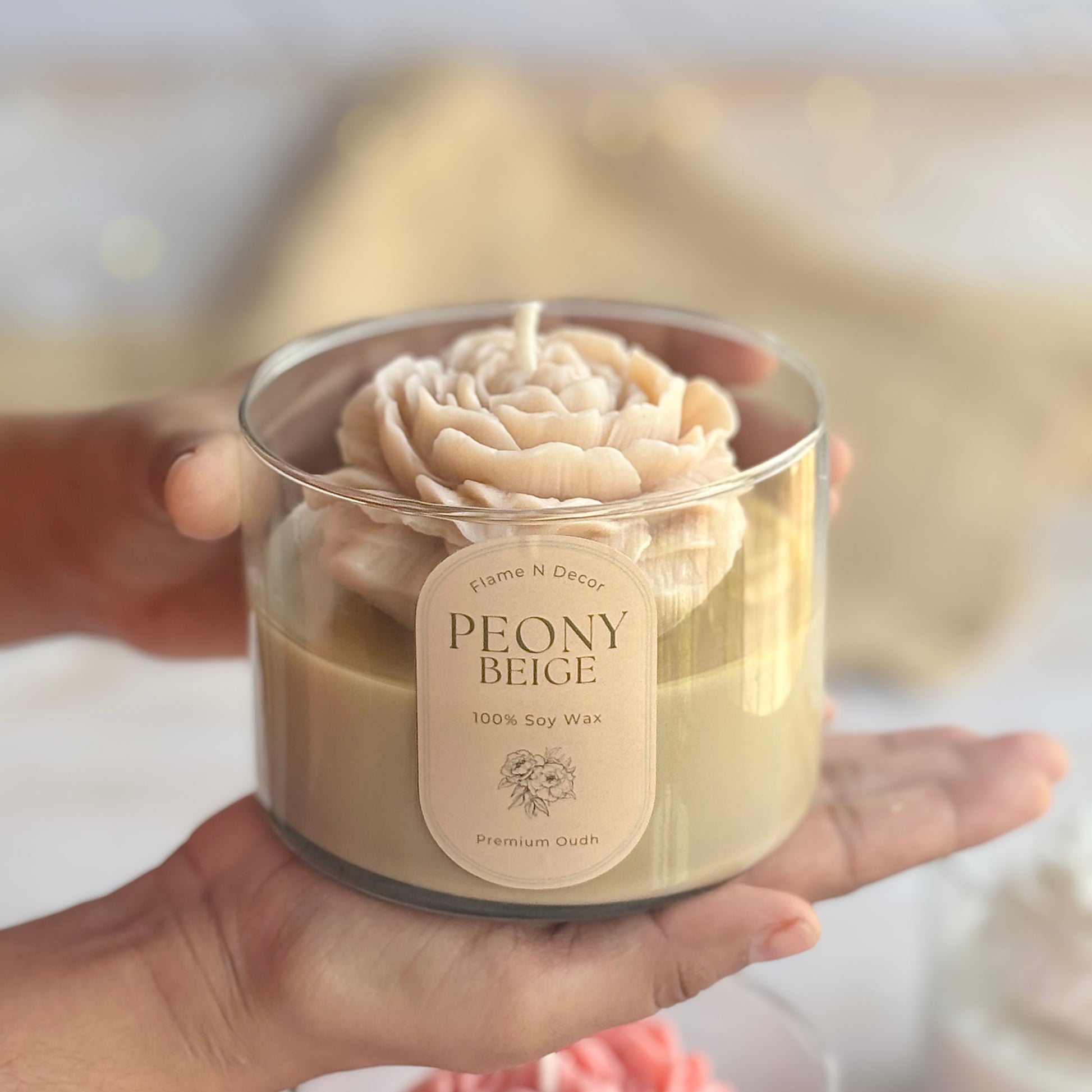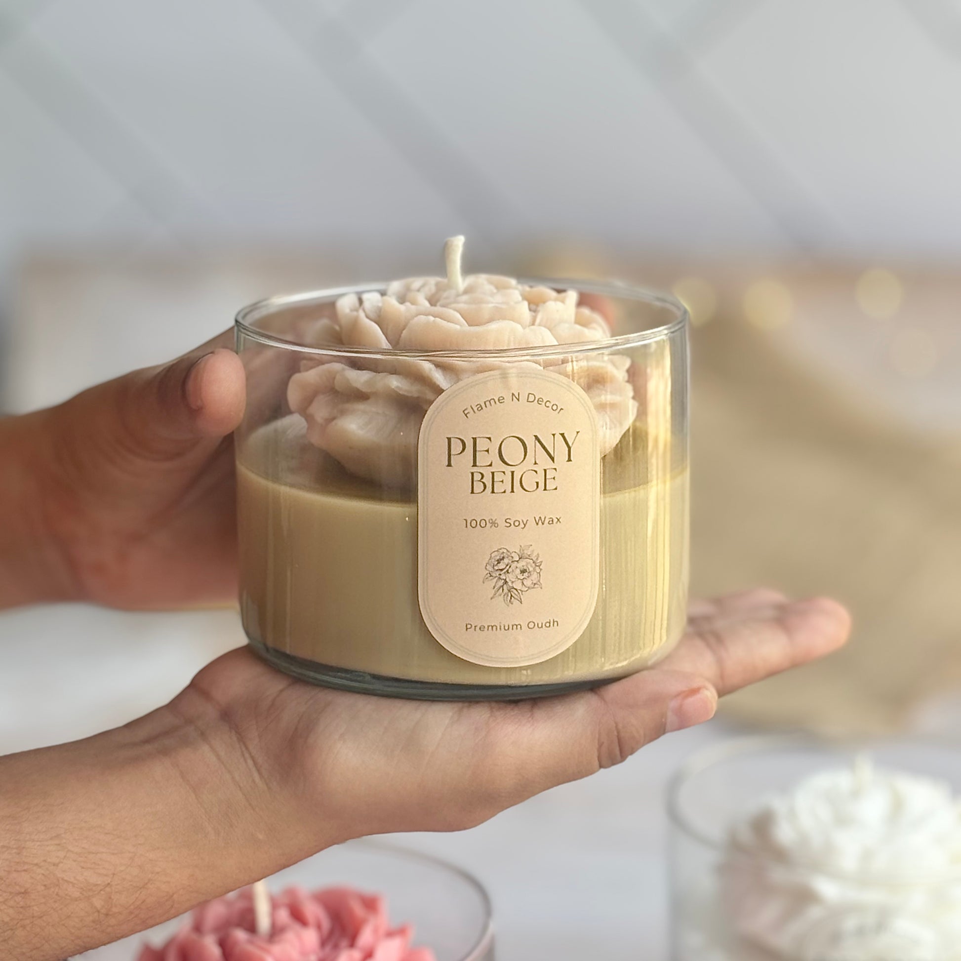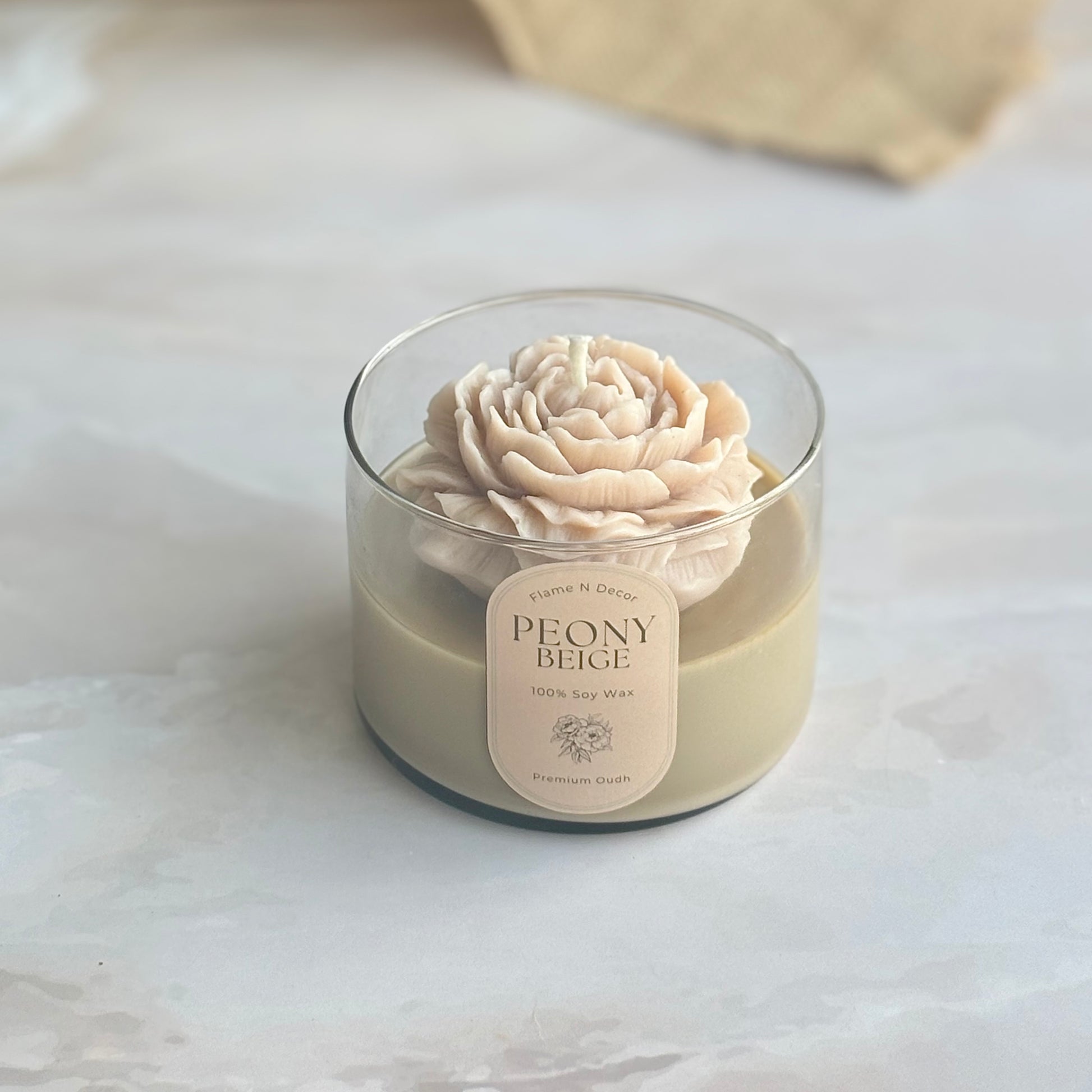 Indulge in the luxurious aroma of our Beige Peony Soy Scented Candle with Premium Oudh. Made with premium soy wax and infused with the rich and exotic scent of Oudh, this candle will create a calming and elegant ambiance in any space. Treat yourself to the benefits of aromatherapy with our beautifully crafted candle.