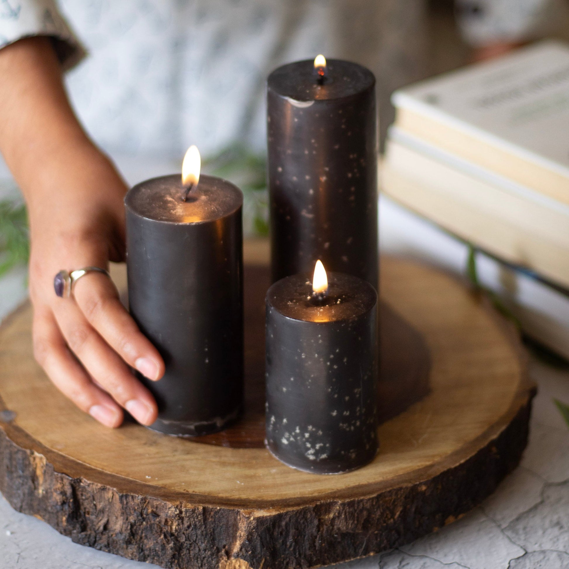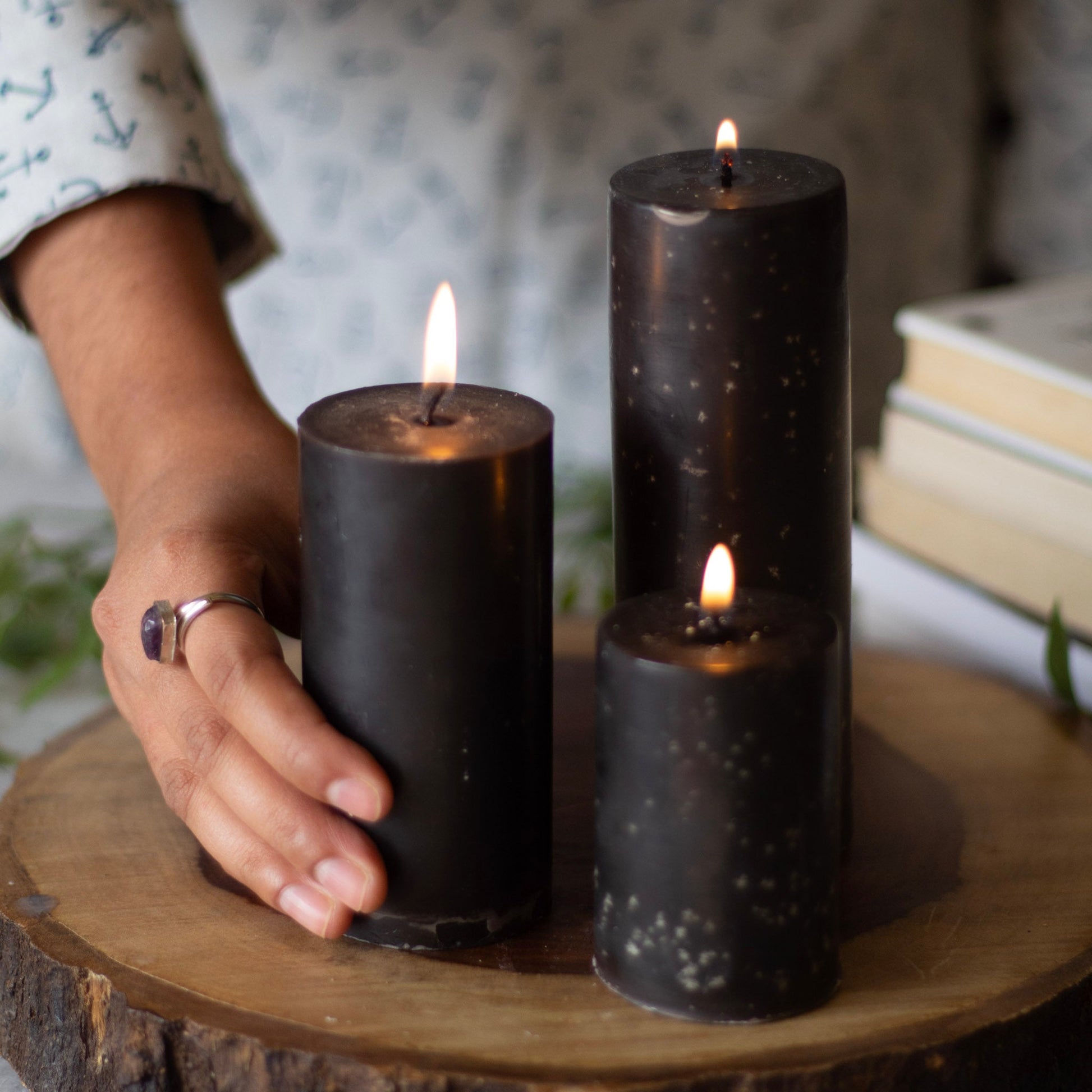 These Black Pillar Unscented Candles come in a set of three and are made of high-quality, paraffin wax. Without any added scents, these candles offer a clean and long-lasting burn, making them perfect for setting a warm and inviting ambiance in any room.