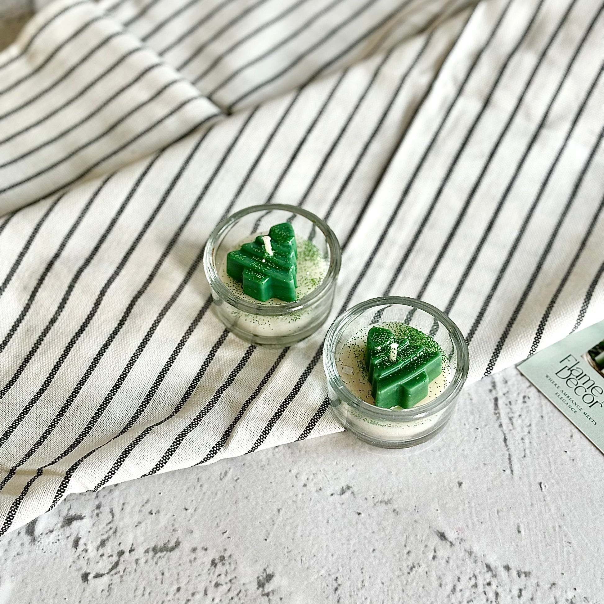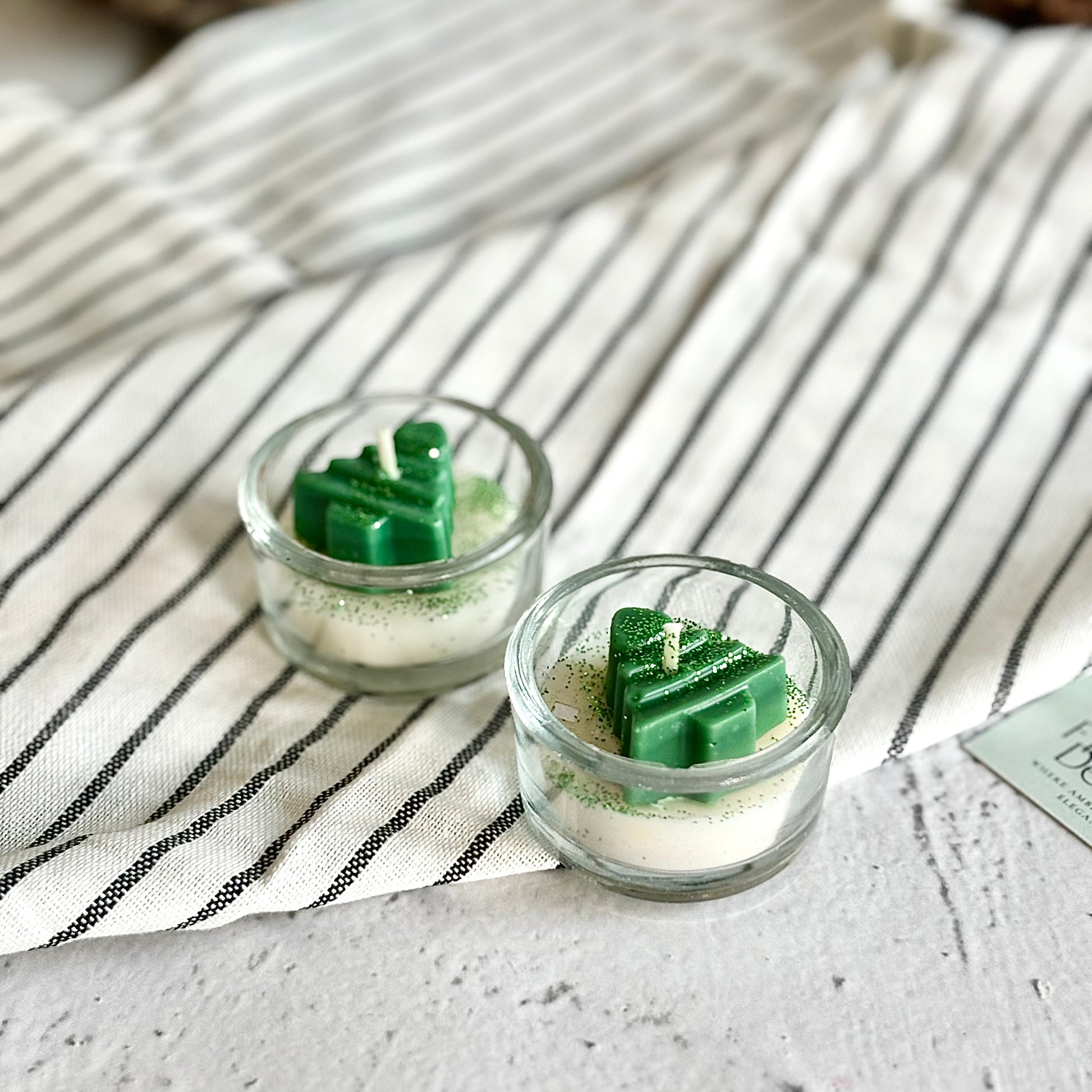 Tree Mini Glass Tealights | Scented Soy Wax Candle | Pack of 2