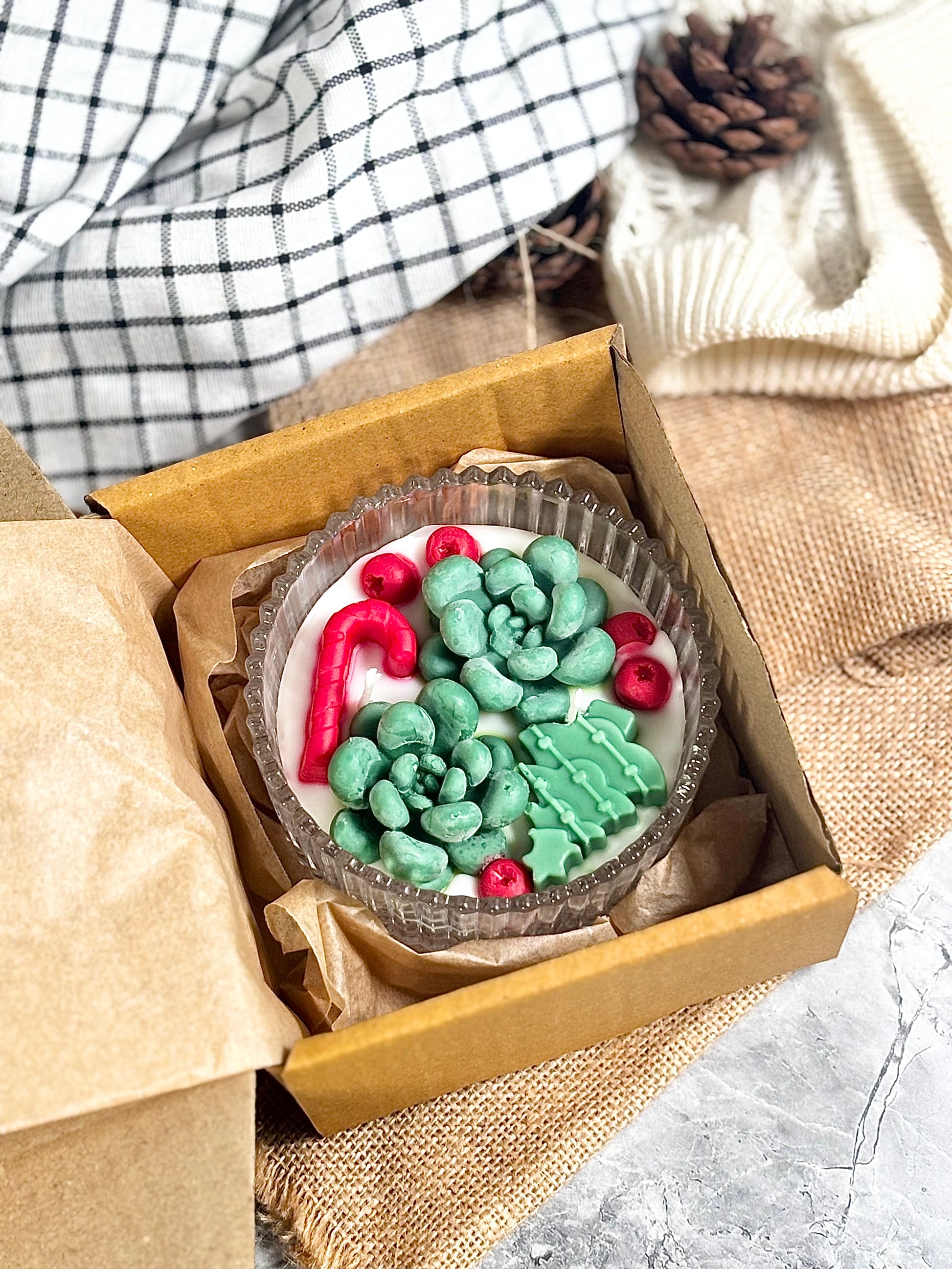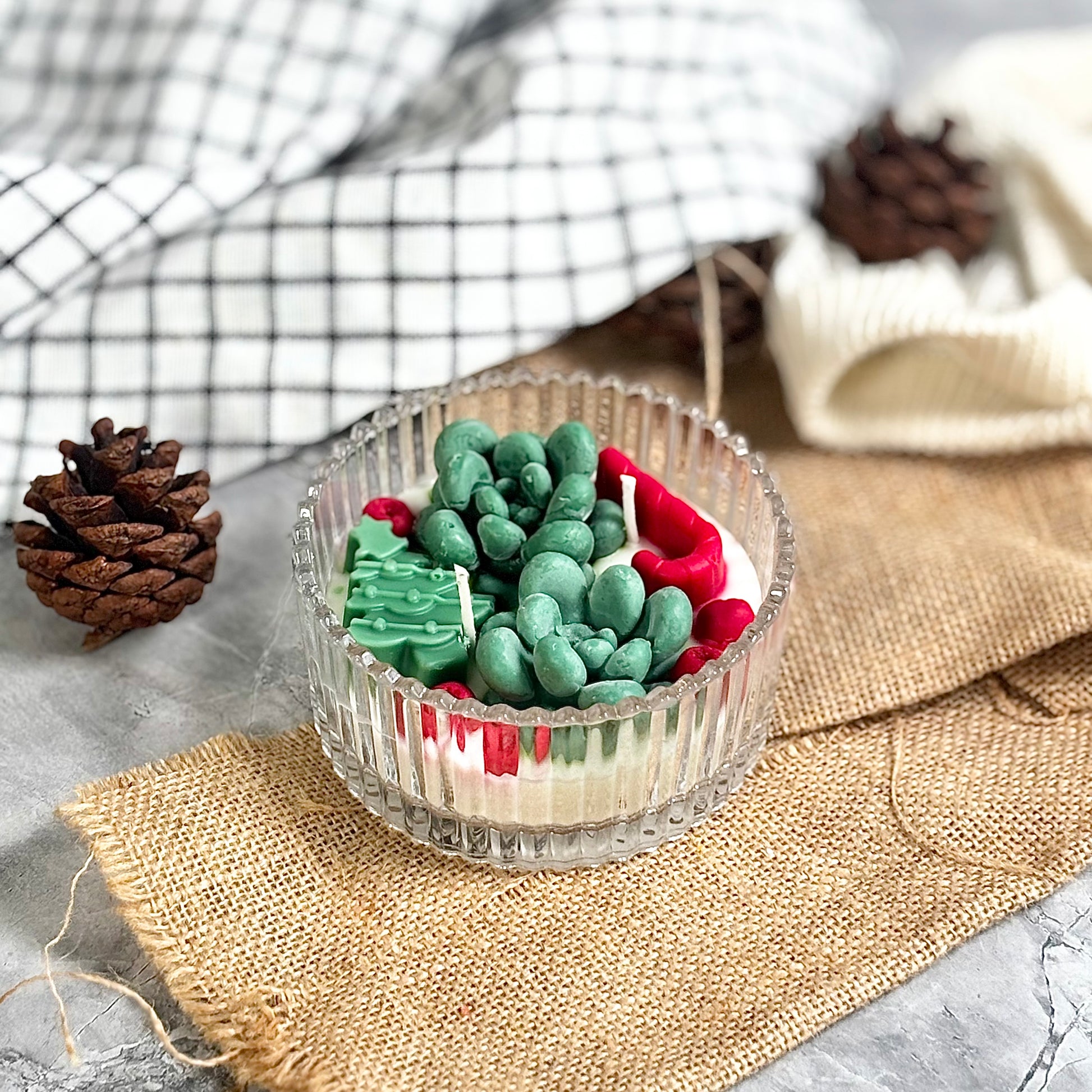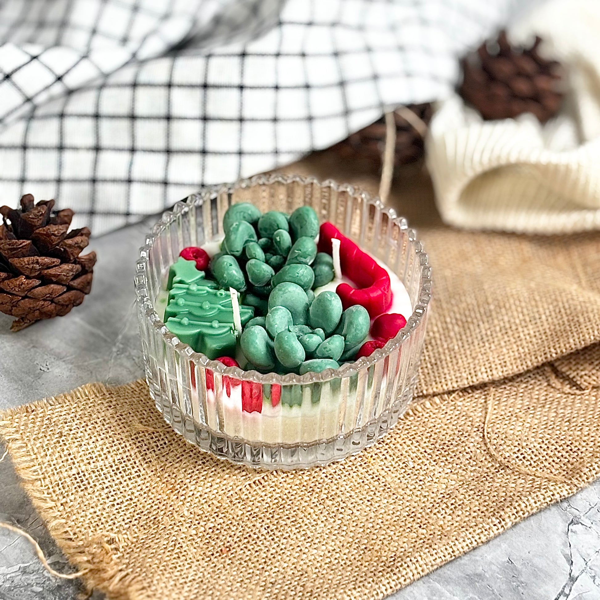 This candle combines the charm of holiday décor with a refreshing fragrance, making it perfect for cozy evenings, table styling, or festive gifting.