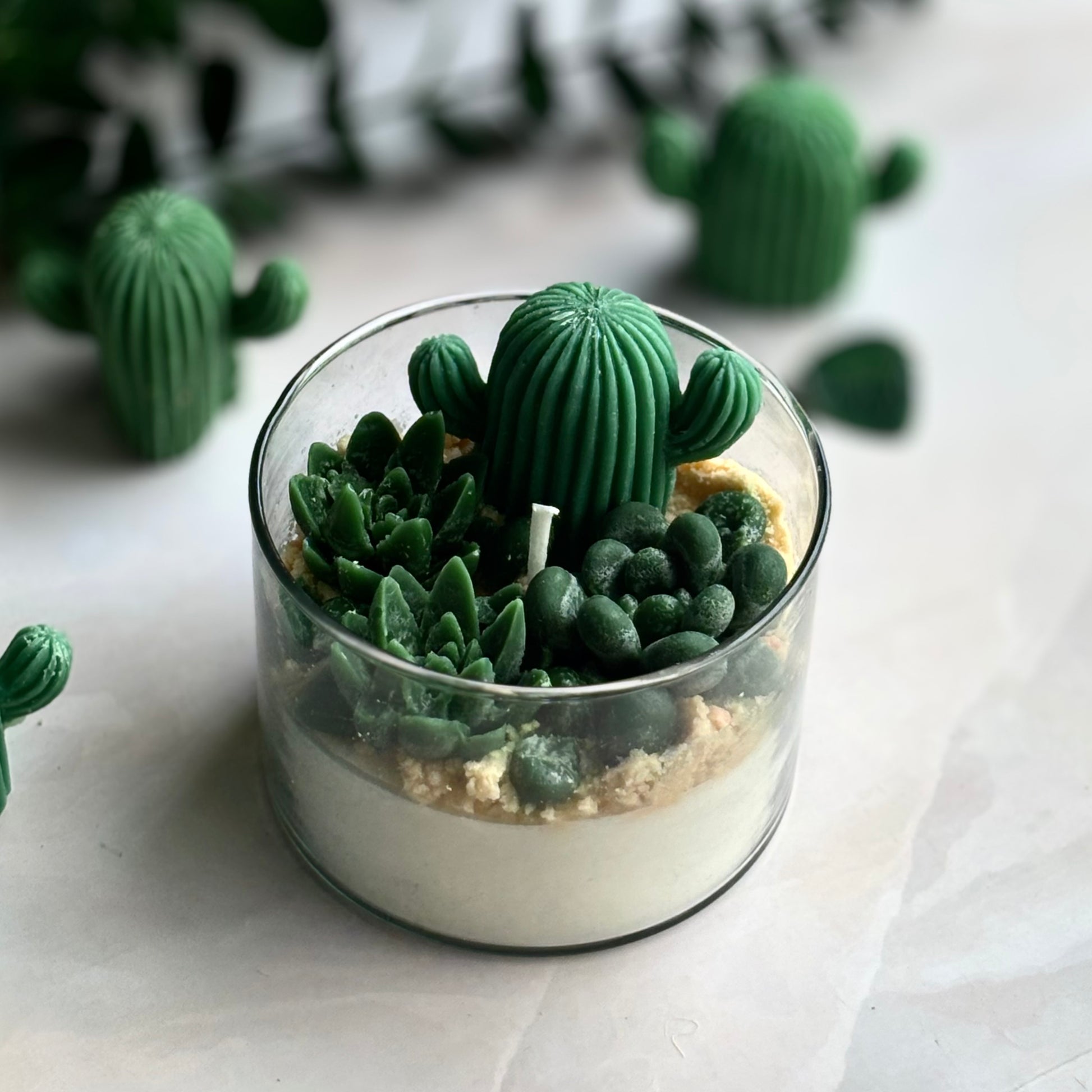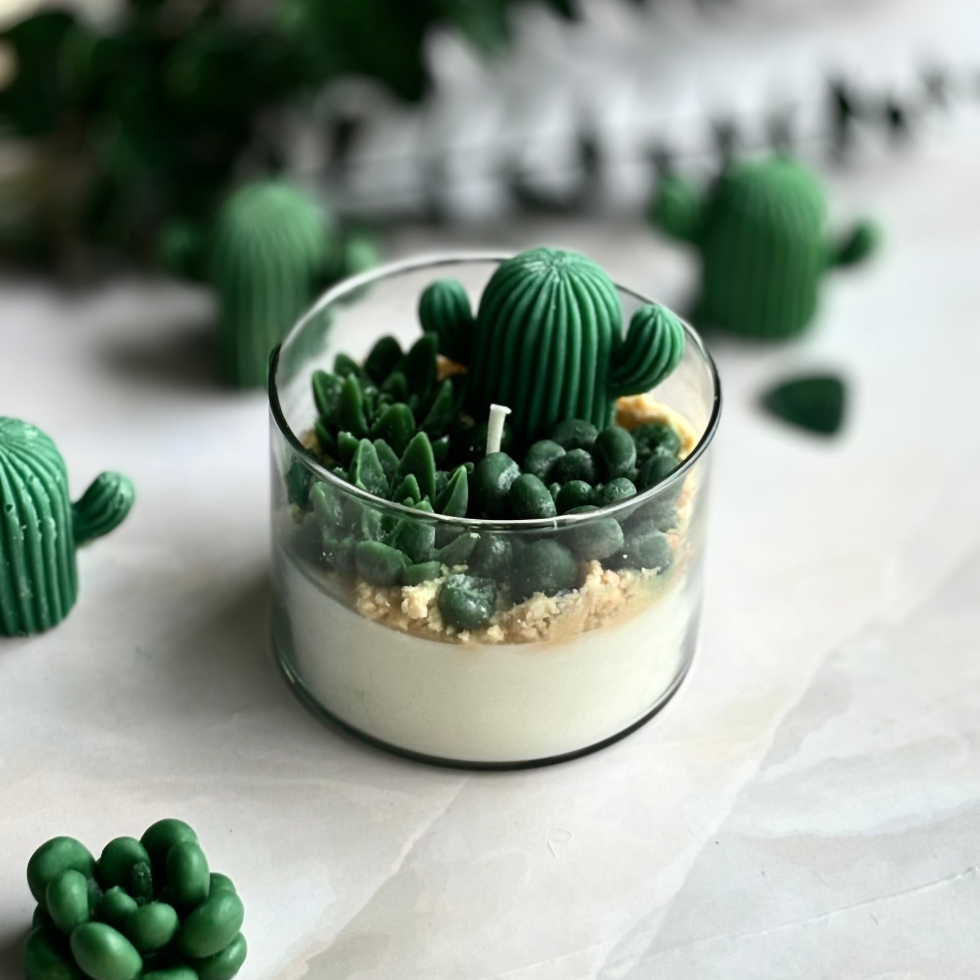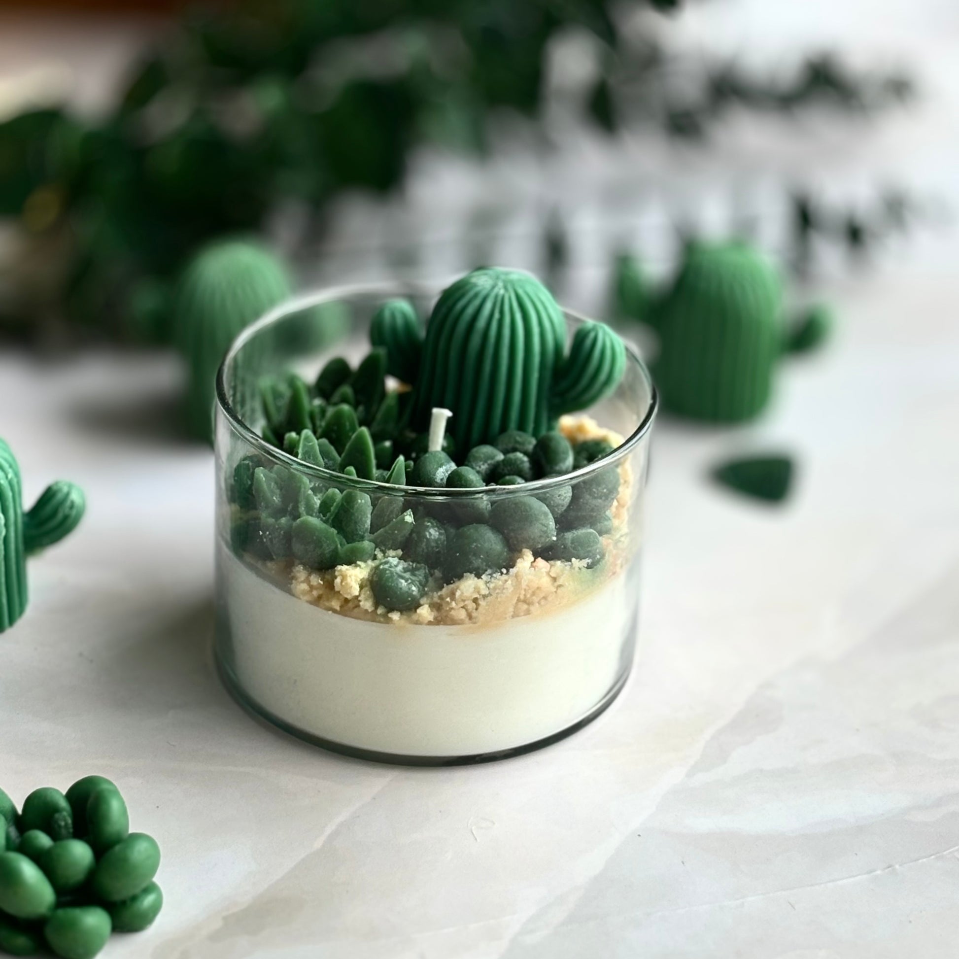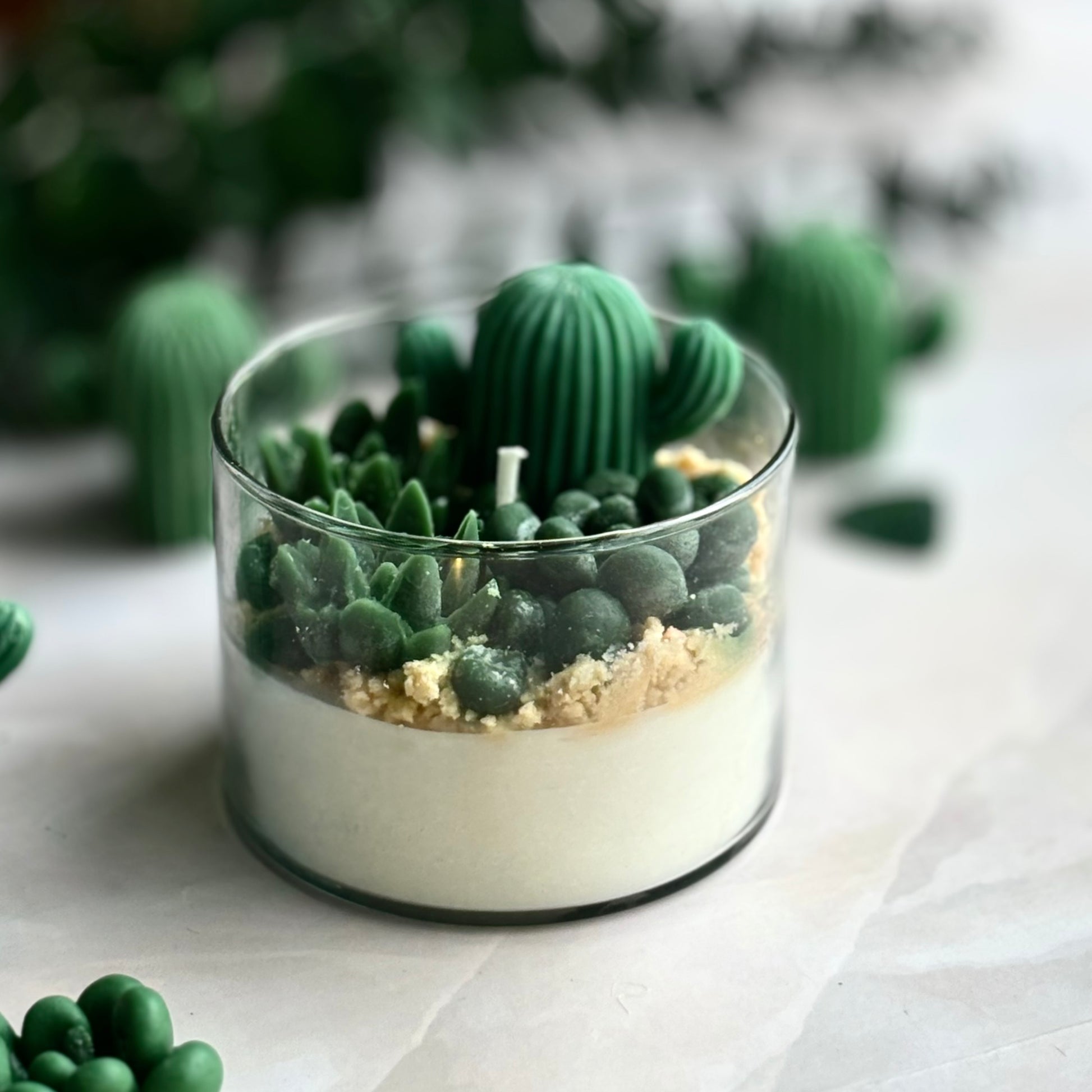 Experience the essence of the desert with our Desert Cactus Soy Wax Candle. Infused with premium Oudh fragrance, this candle is artistically made with soy wax for a clean burn. With a weight of 260 Gm, it's perfect for creating a warm and inviting atmosphere for your guests, or for your own relaxation while reading.