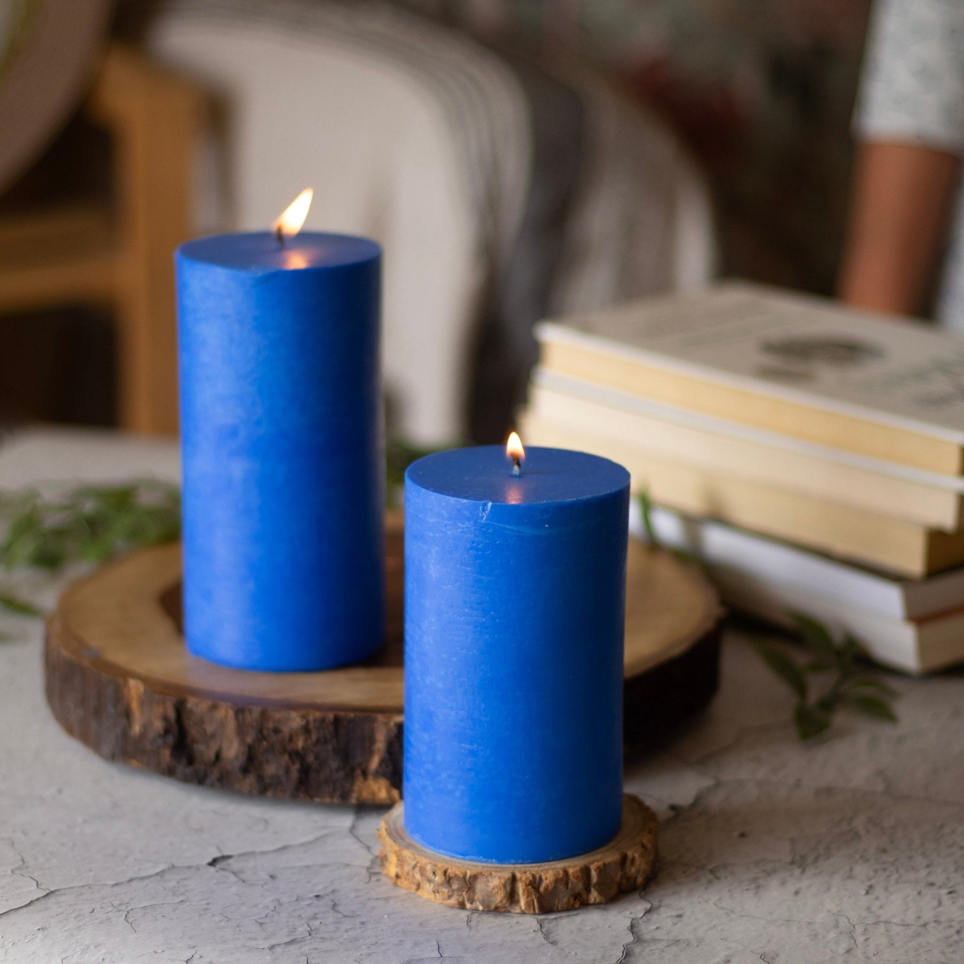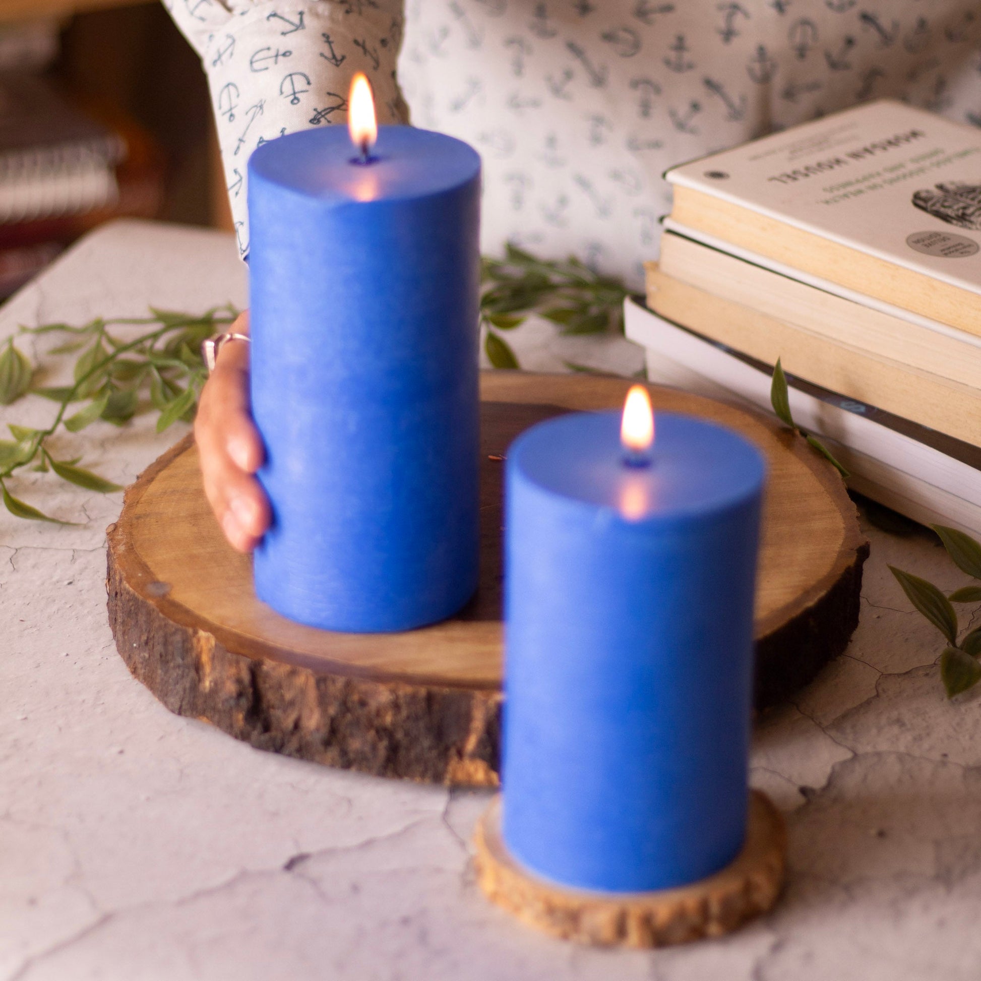 This Indigo Pillar Unscented Soy Candle is made with natural soy wax, providing a clean and eco-friendly burn. Its 3 inch diameter is perfect for creating a warm and inviting atmosphere in any space. Enjoy the subtle, non-overpowering glow and the benefits of using a natural and sustainable product.