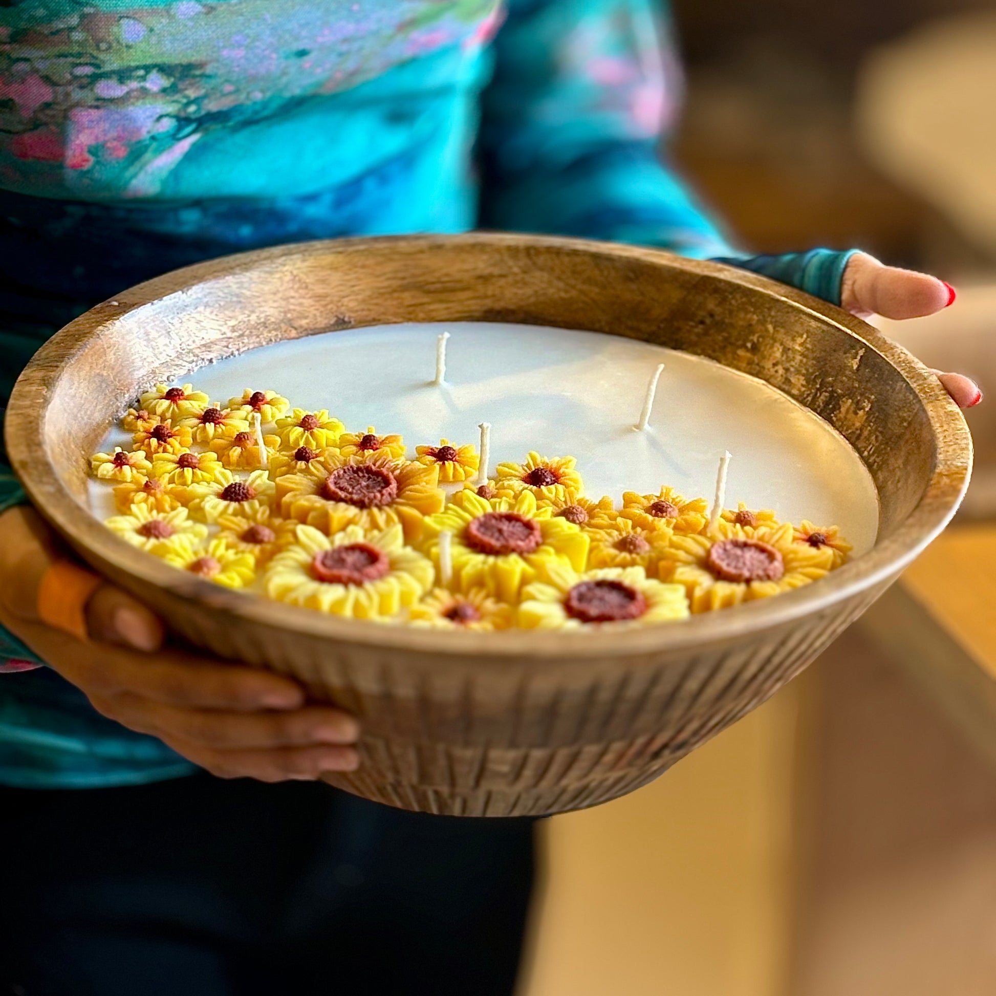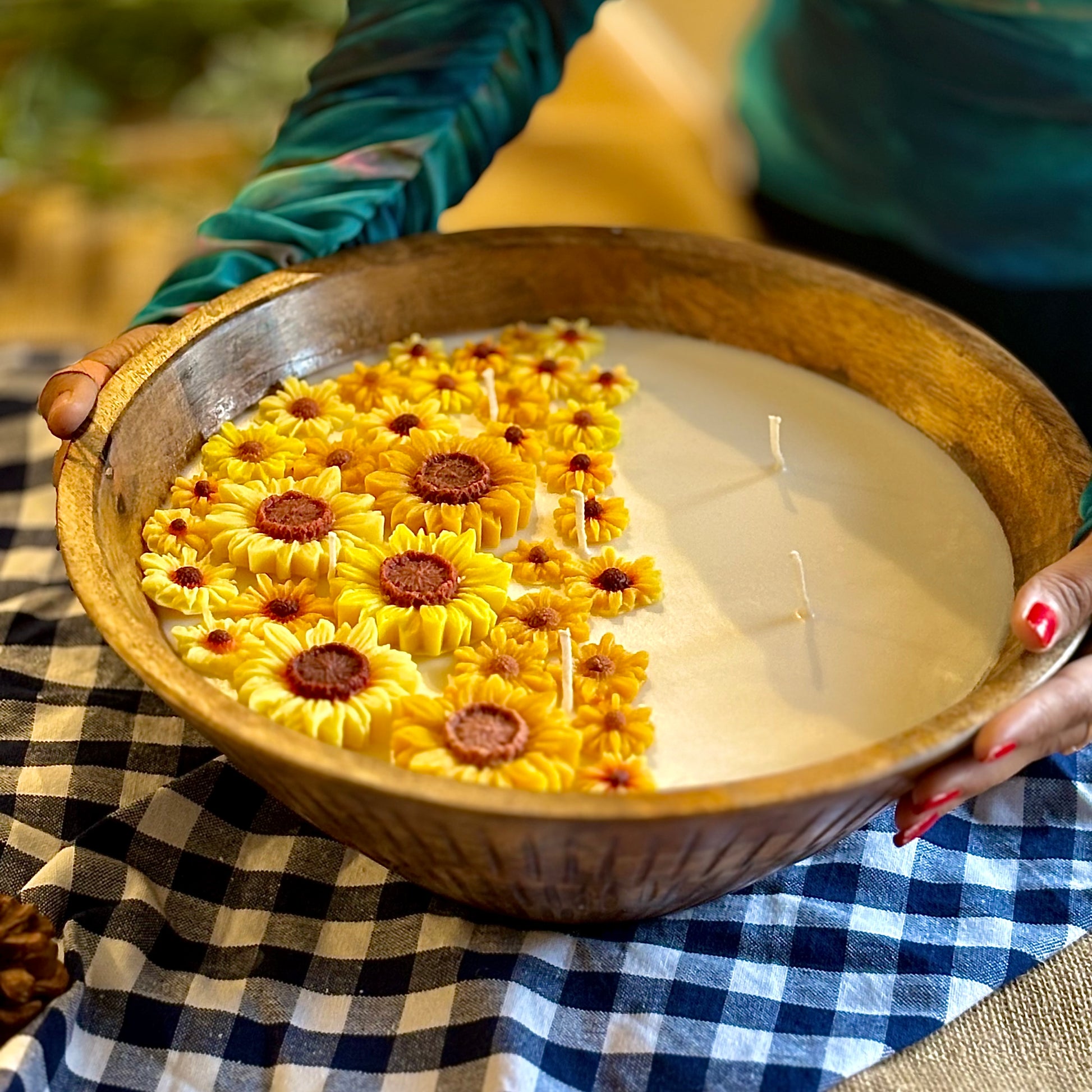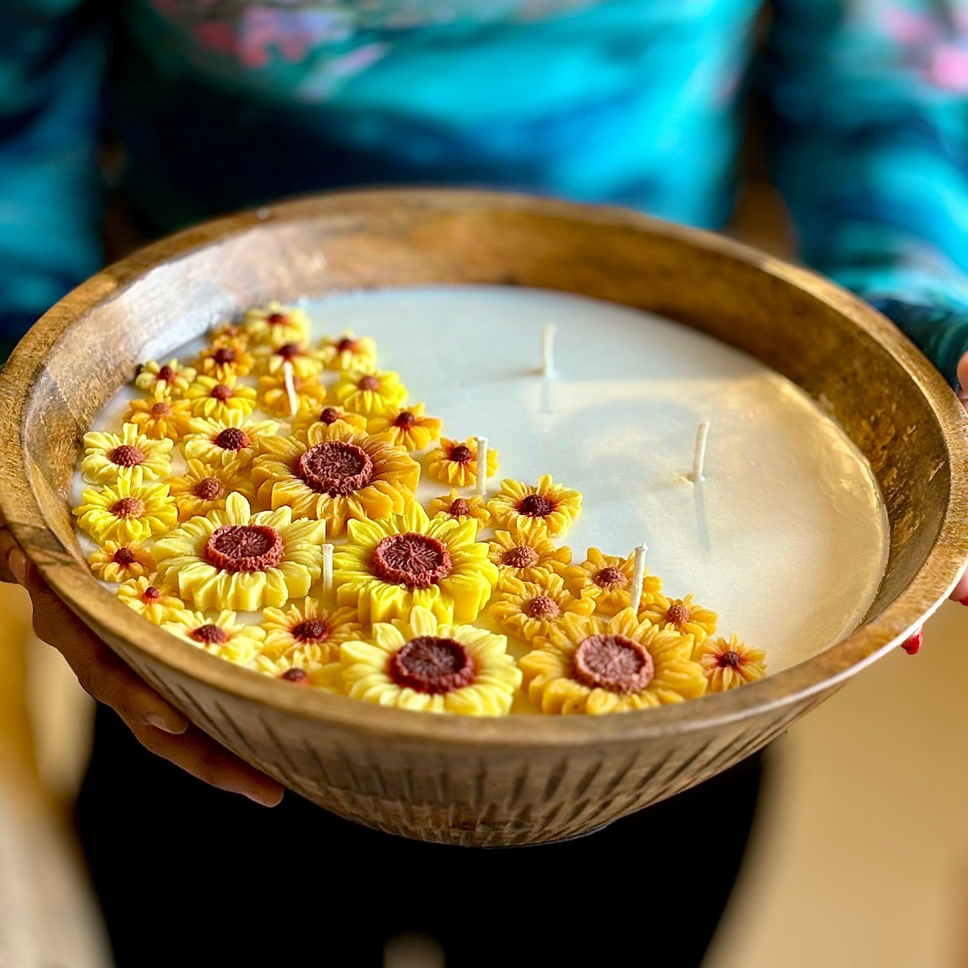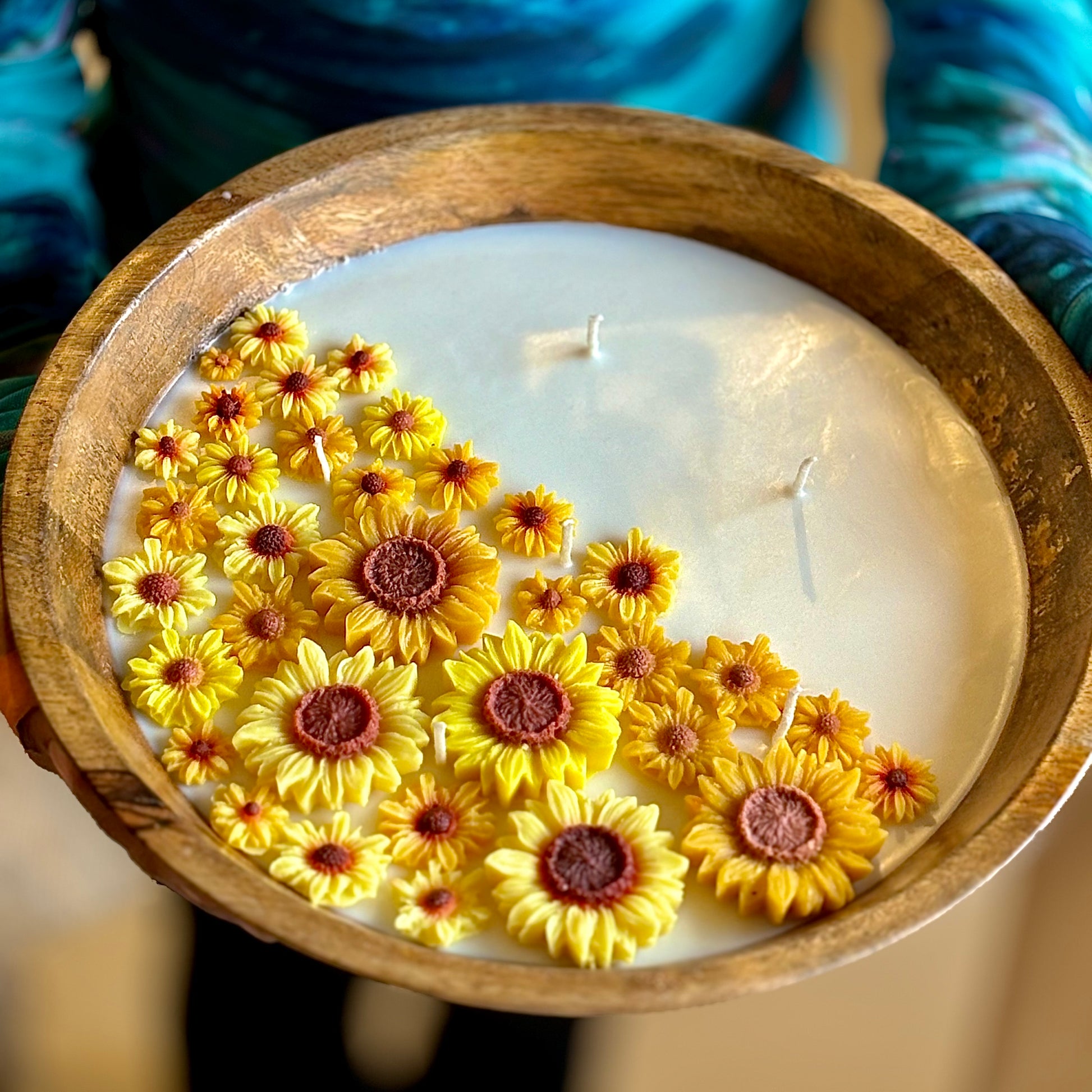 Enhance your space with our Large Sunflower Bouquet Soy Scented Candle. Weighing 2.5 kg approx, it is the perfect gift for a special someone or to create a cozy corner. The bright fragrance will brighten up your day with its warm and inviting aroma.
