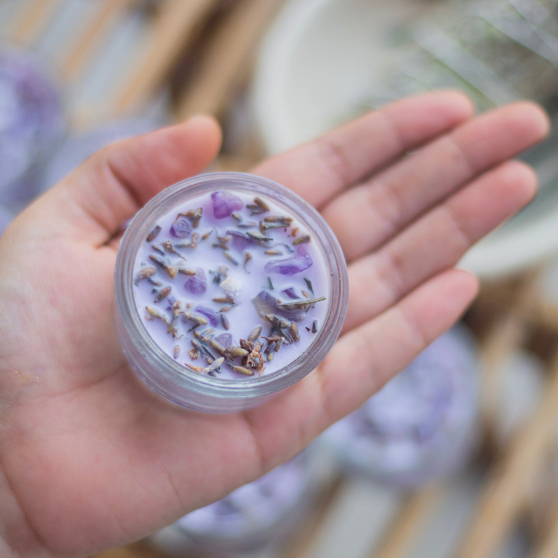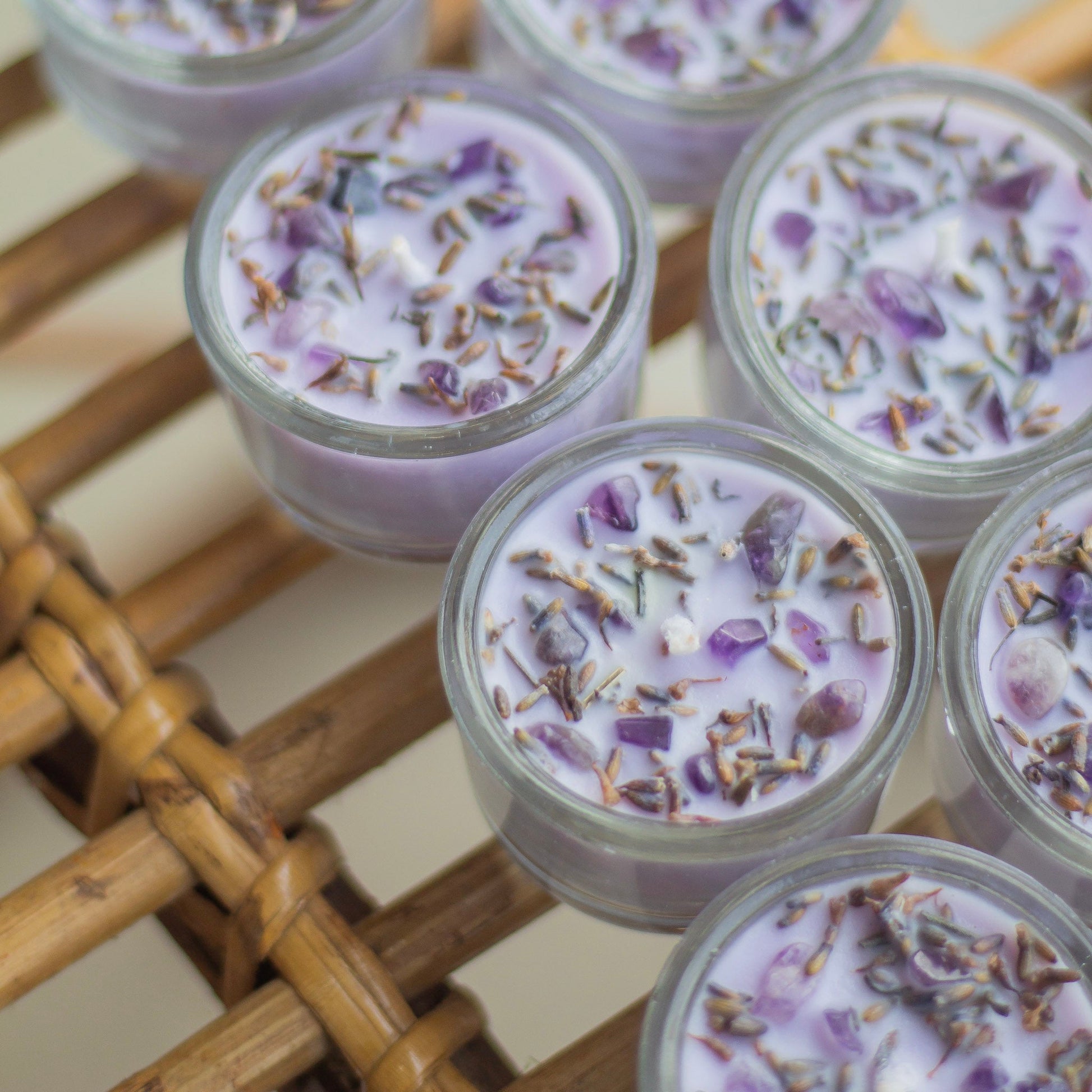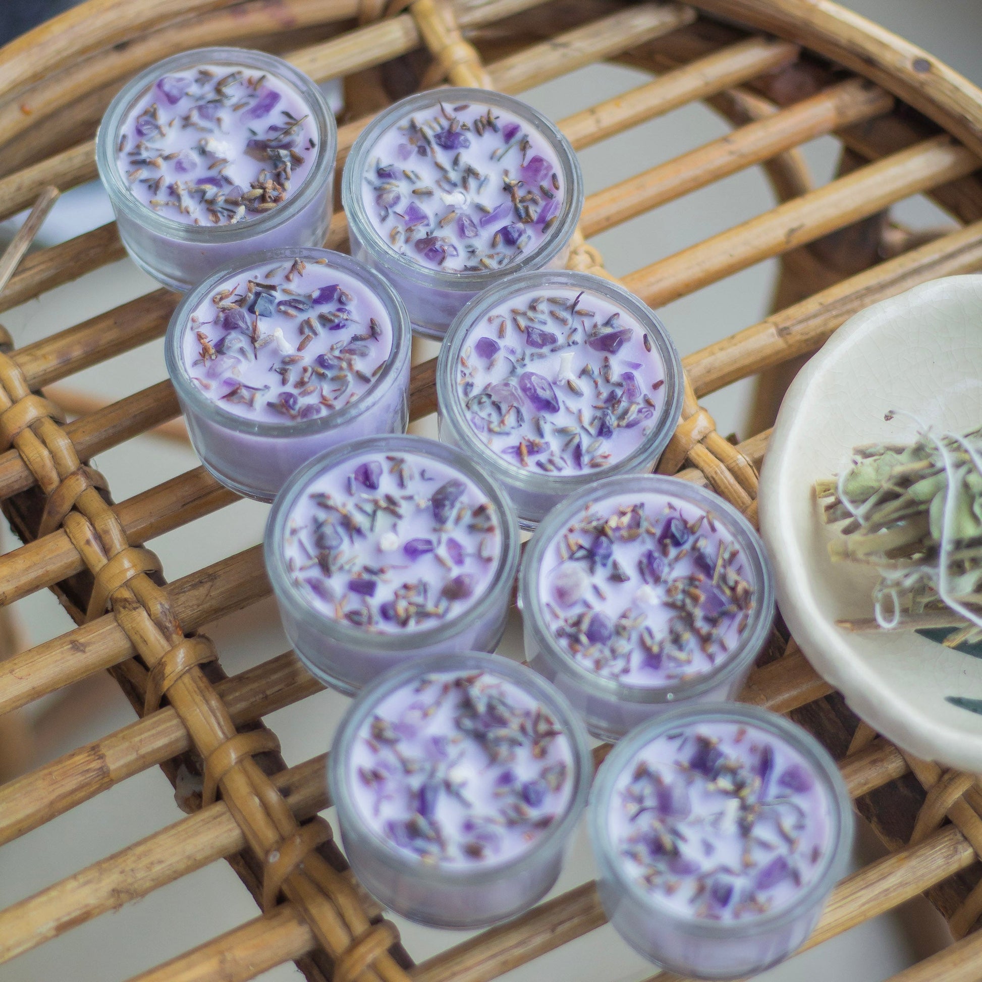 Lavender Buds + Amethyst + Lavender colour Scented Tealight Candle - Set of 8