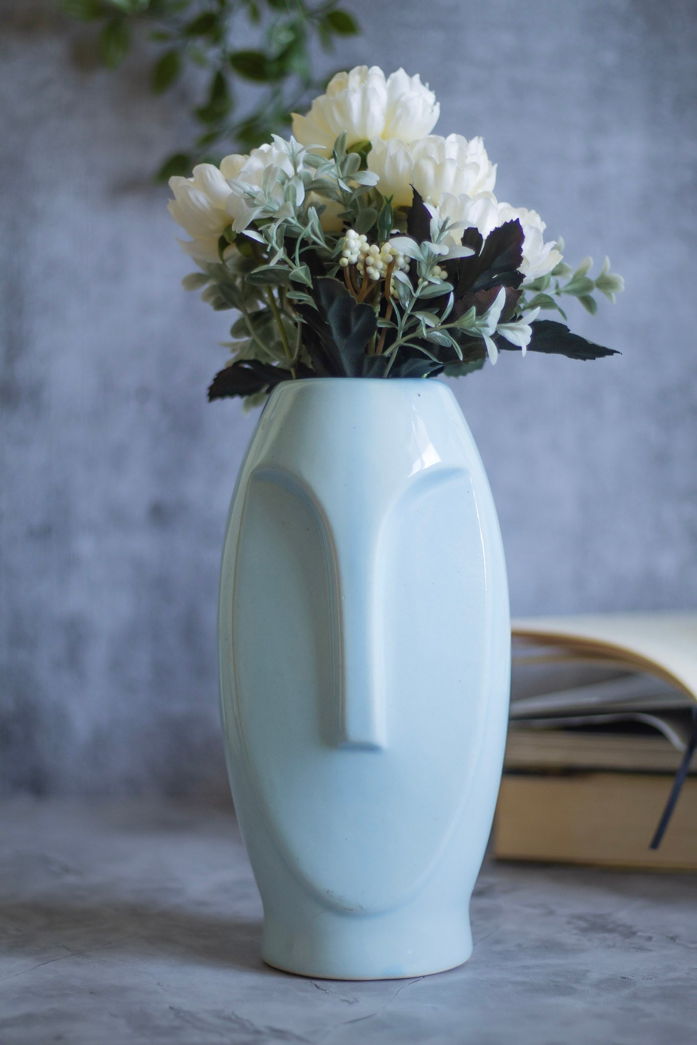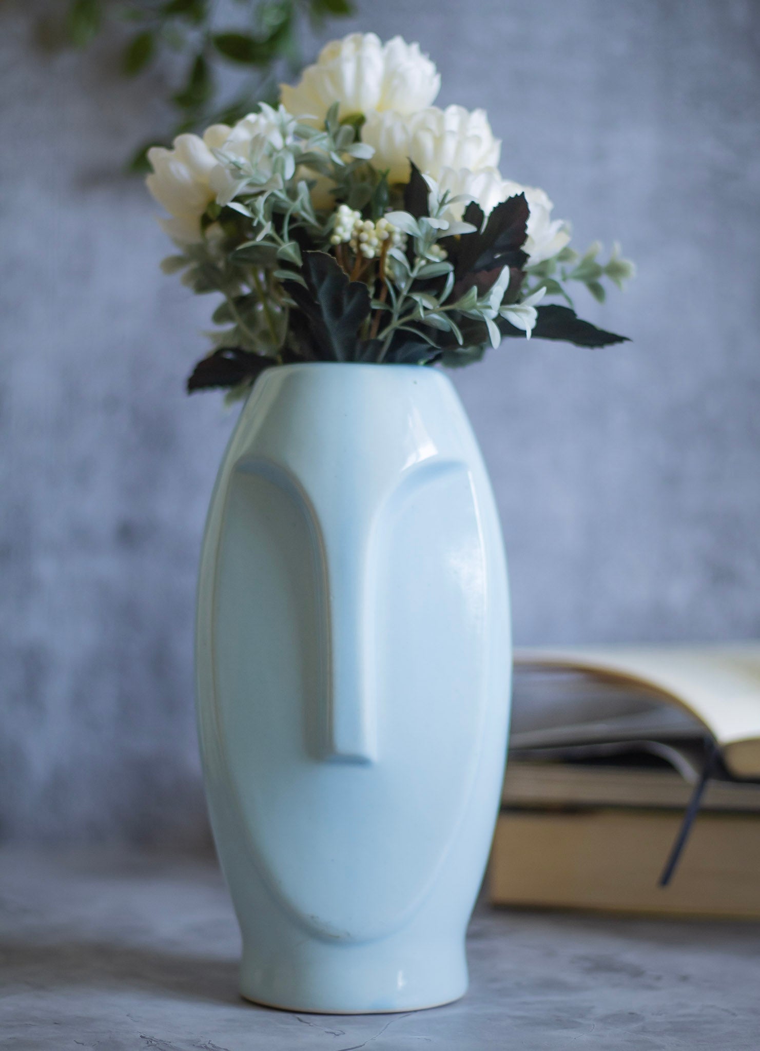 Bring a unique and modern aesthetic to your home décor with this beautiful Pastel Blue Abstract face vase. Carefully crafted from high-quality ceramic, this piece will remain an eye-catching mainstay in your home for years to come. The bold blend of colors creates a captivating and memorable look. A perfect centerpiece for any space.