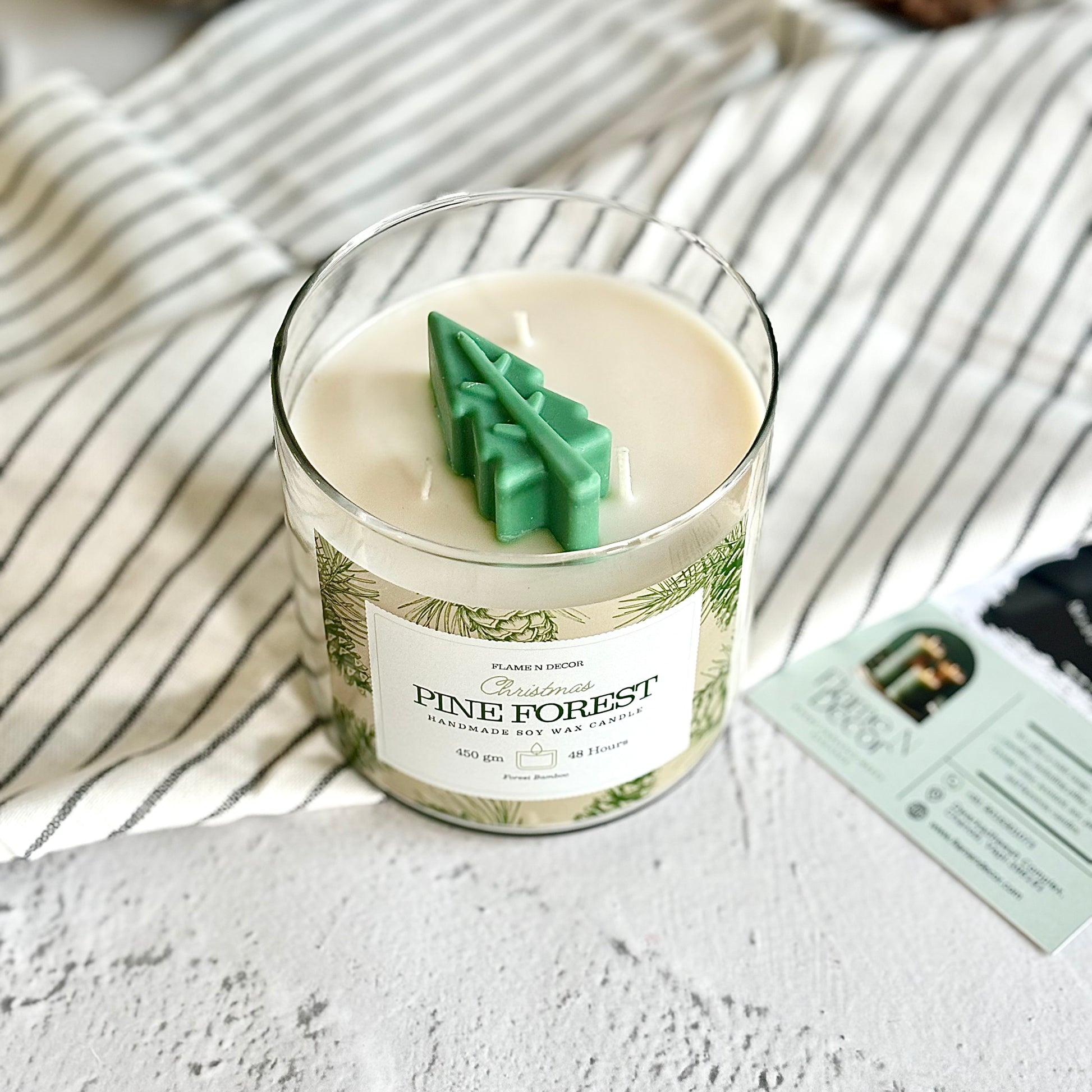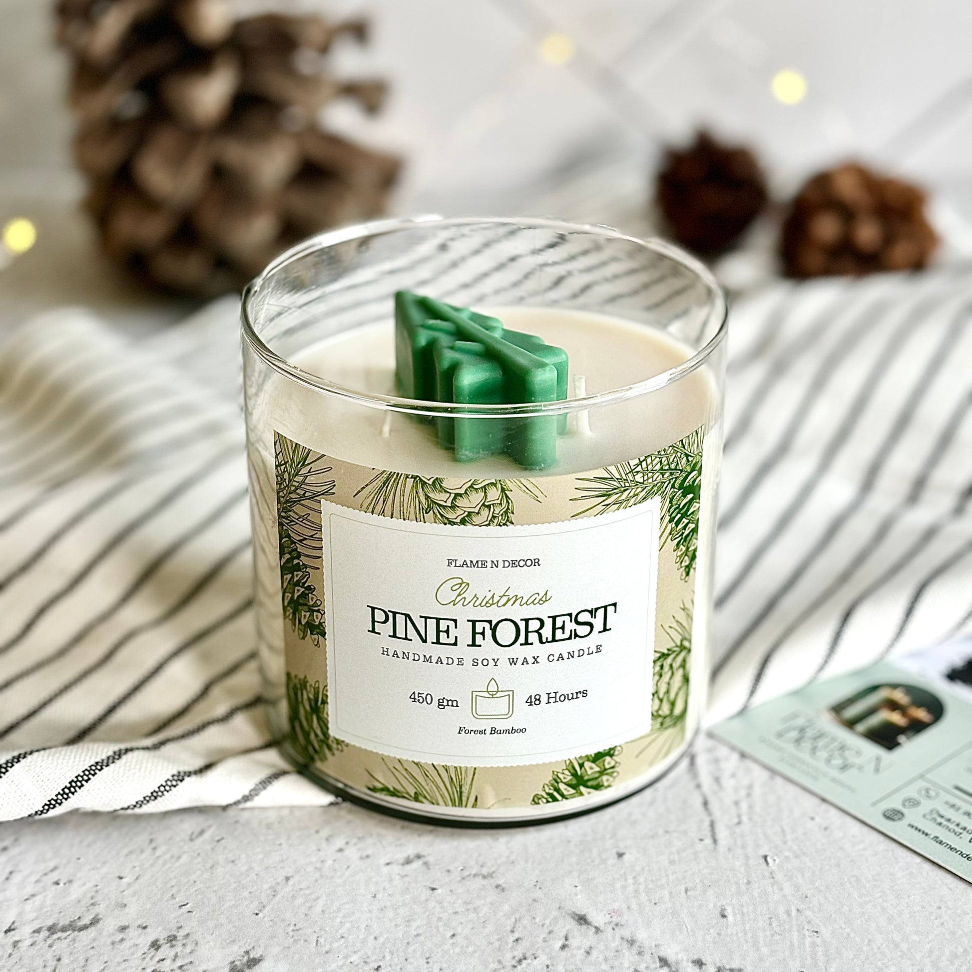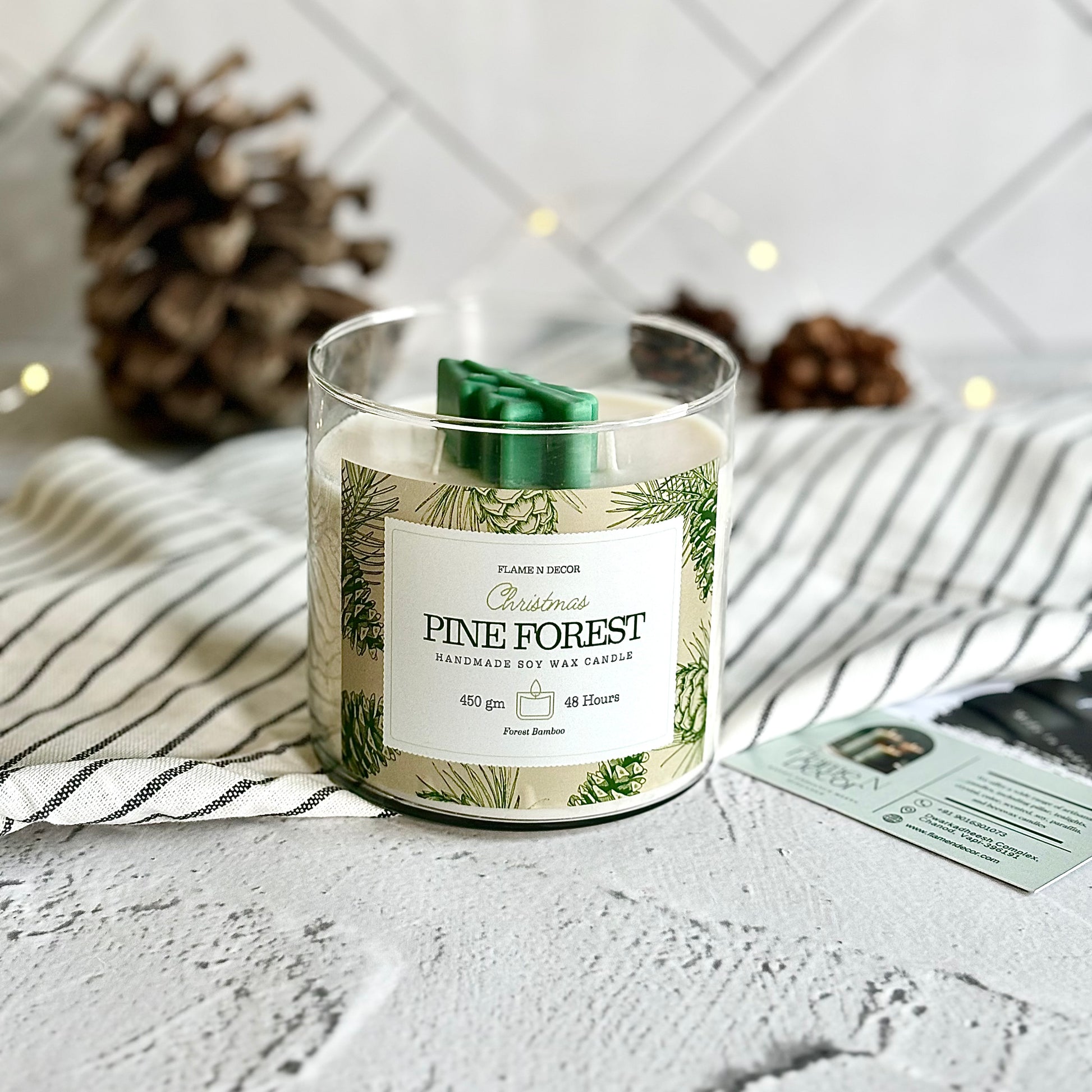 Experience the magic with our Pine Forest 3-wick soy candle! Get transported to a bamboo forest on a winter night with its 520 Gm approx soy wax and dreamy forest fragrance. Light it up this season and set a cozy warm atmosphere for the holidays!