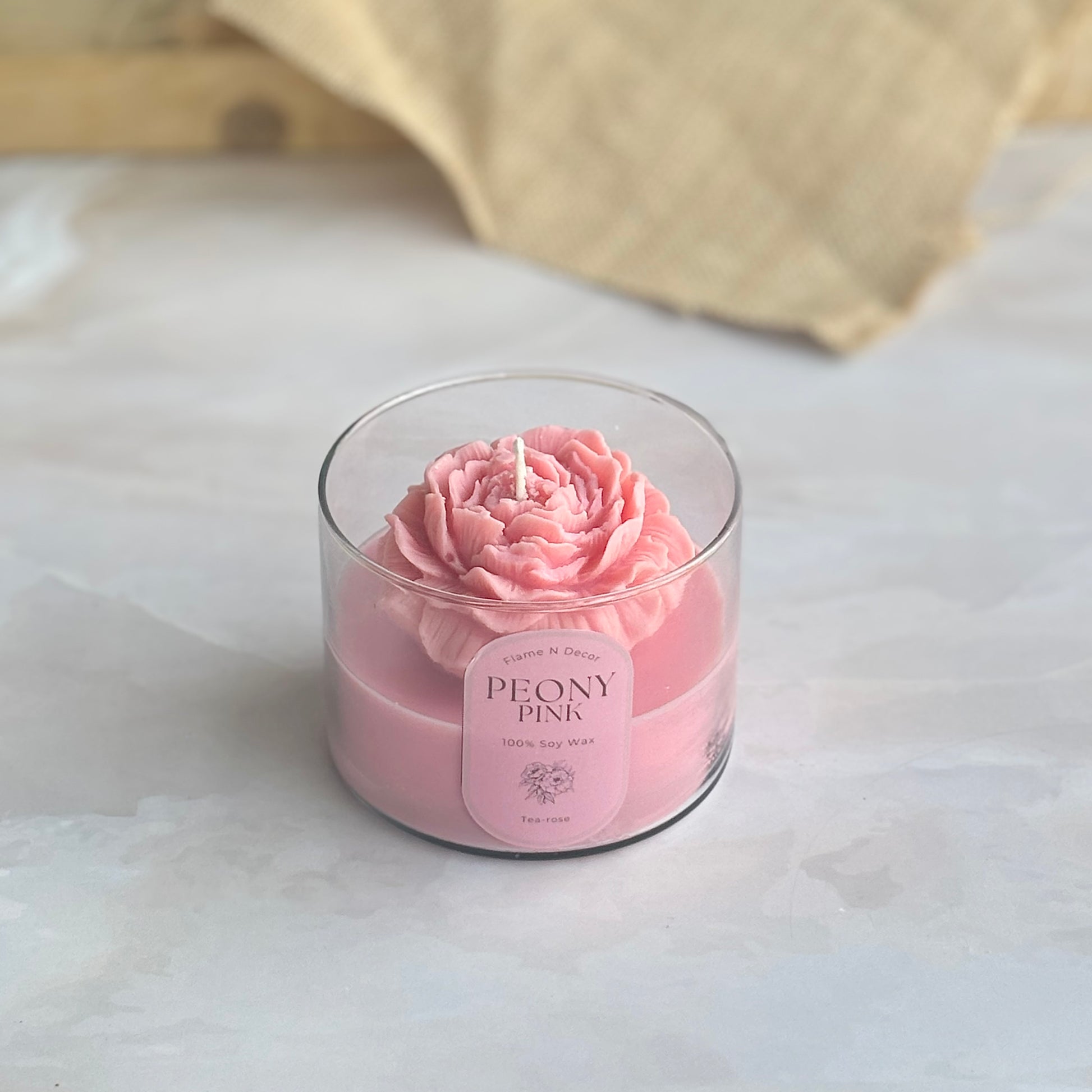 Pink Peony Soy Wax Scented Candle | Tea-rose