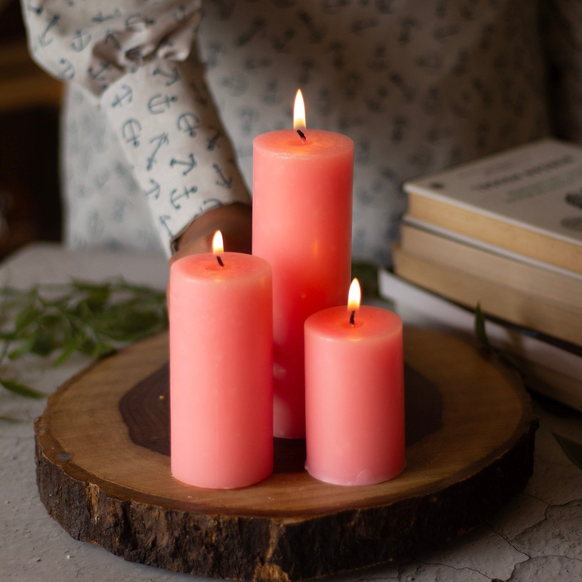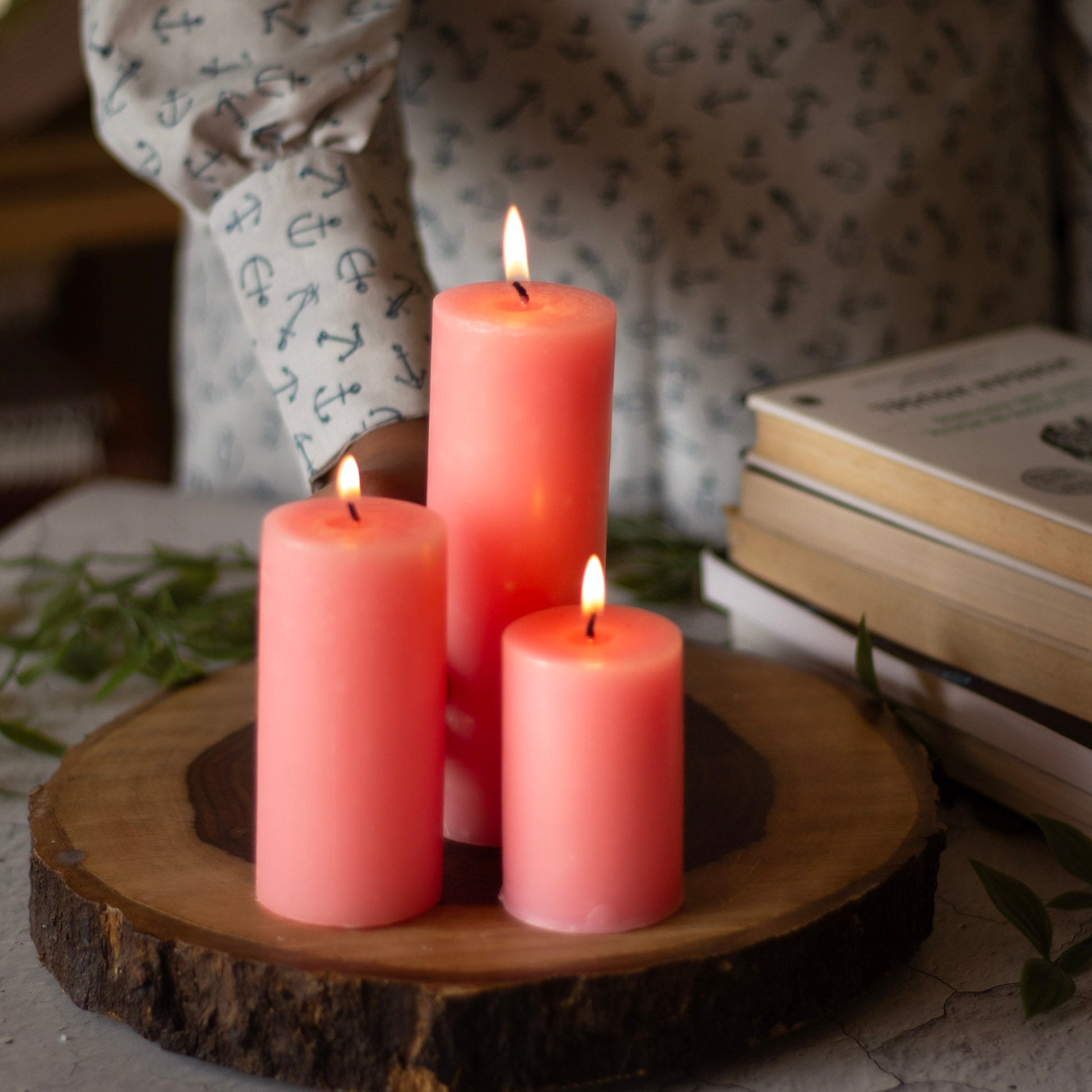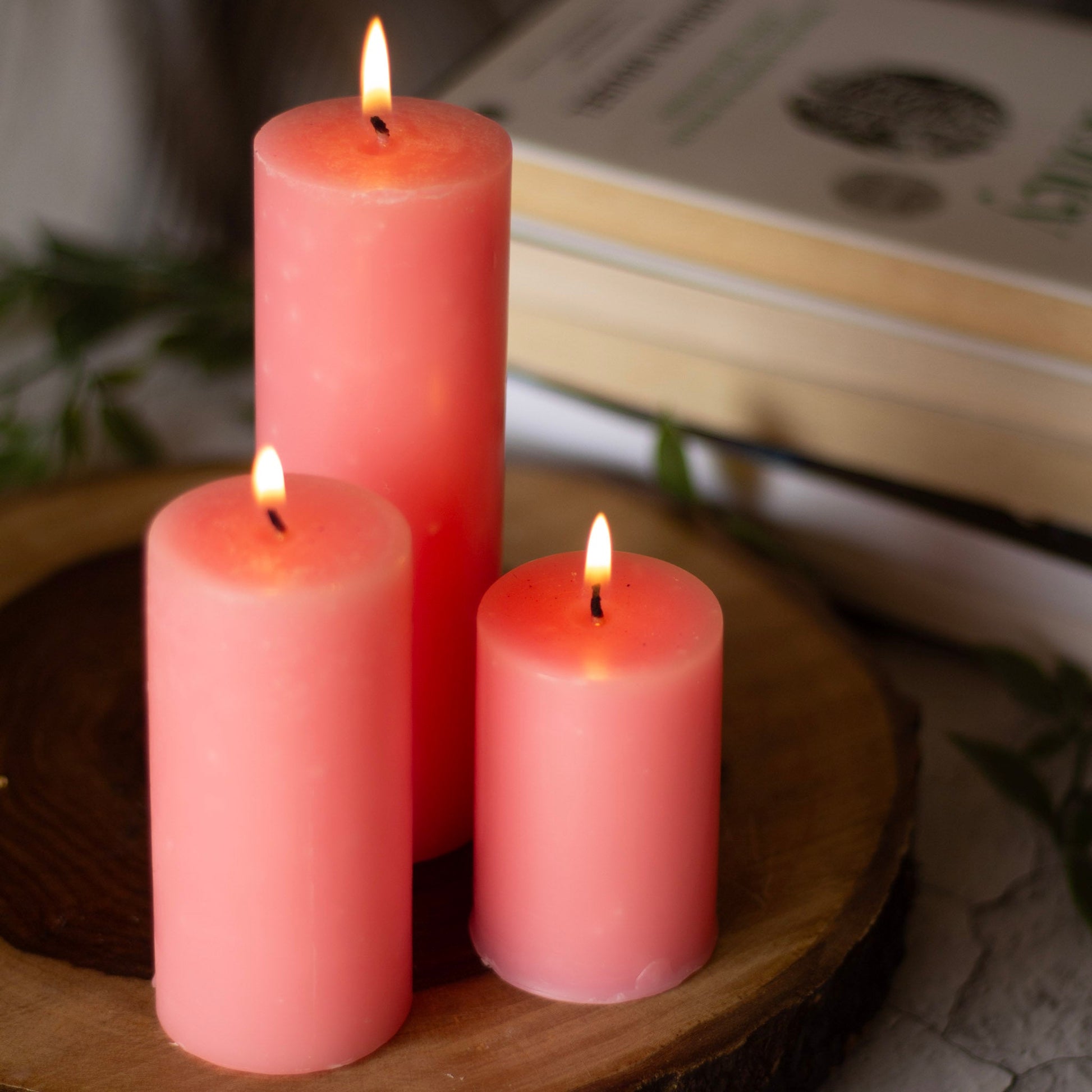 Expertly crafted from paraffin, this set of 3 Pink Pillar unscented candles provides a warm and inviting ambiance to any room. With varying sizes of 2x3, 2x4, and 2x6 inches, these candles offer versatility and long-lasting burn time. Perfect for any occasion and décor.