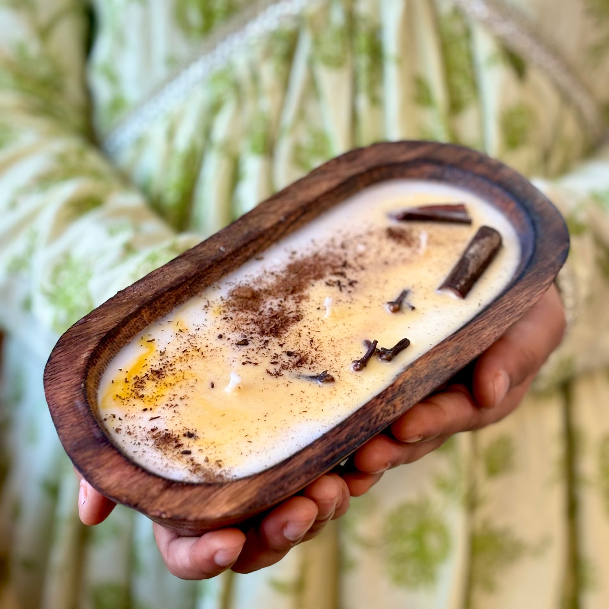 Pumpkin Spice Wooden Dough Bowl Soy Candle