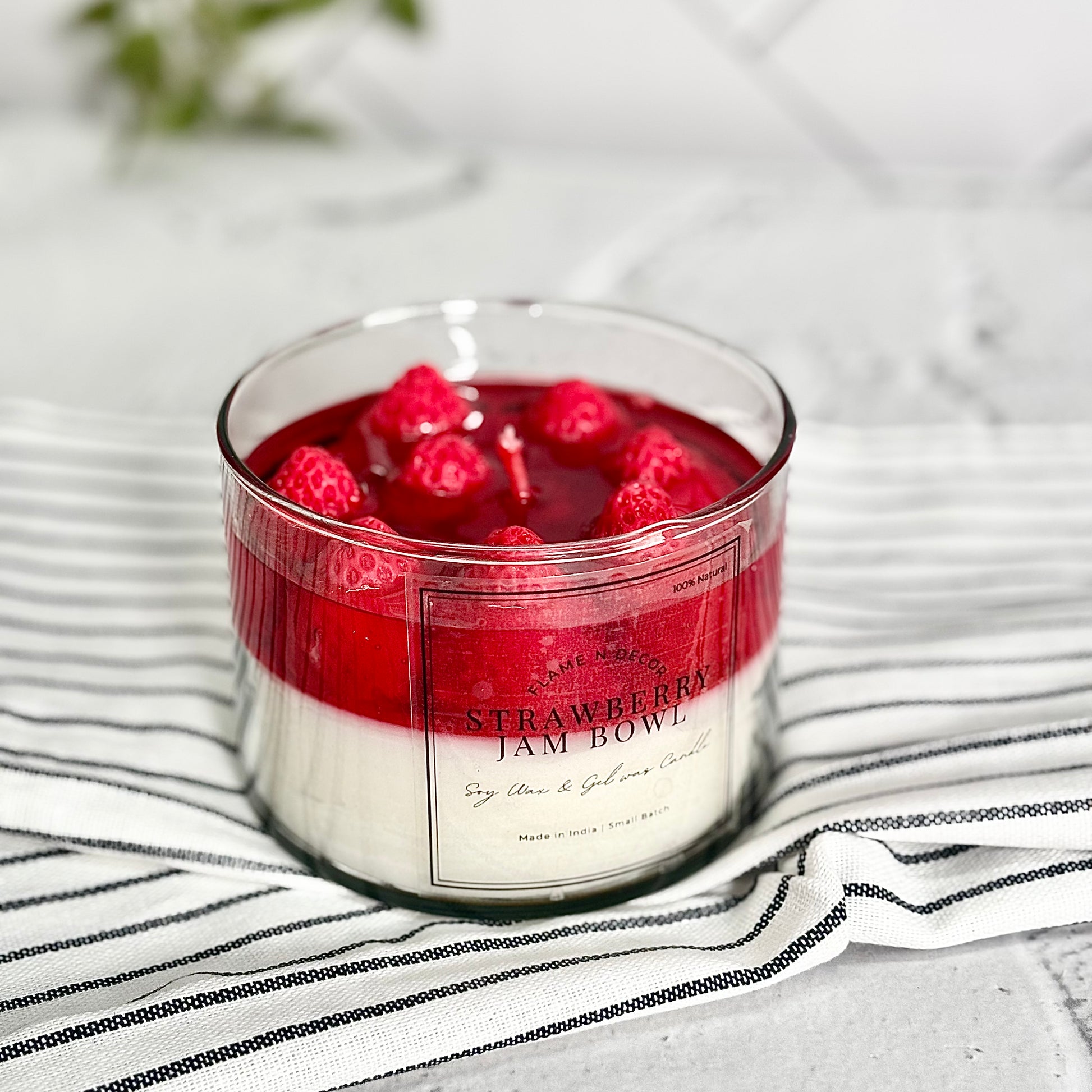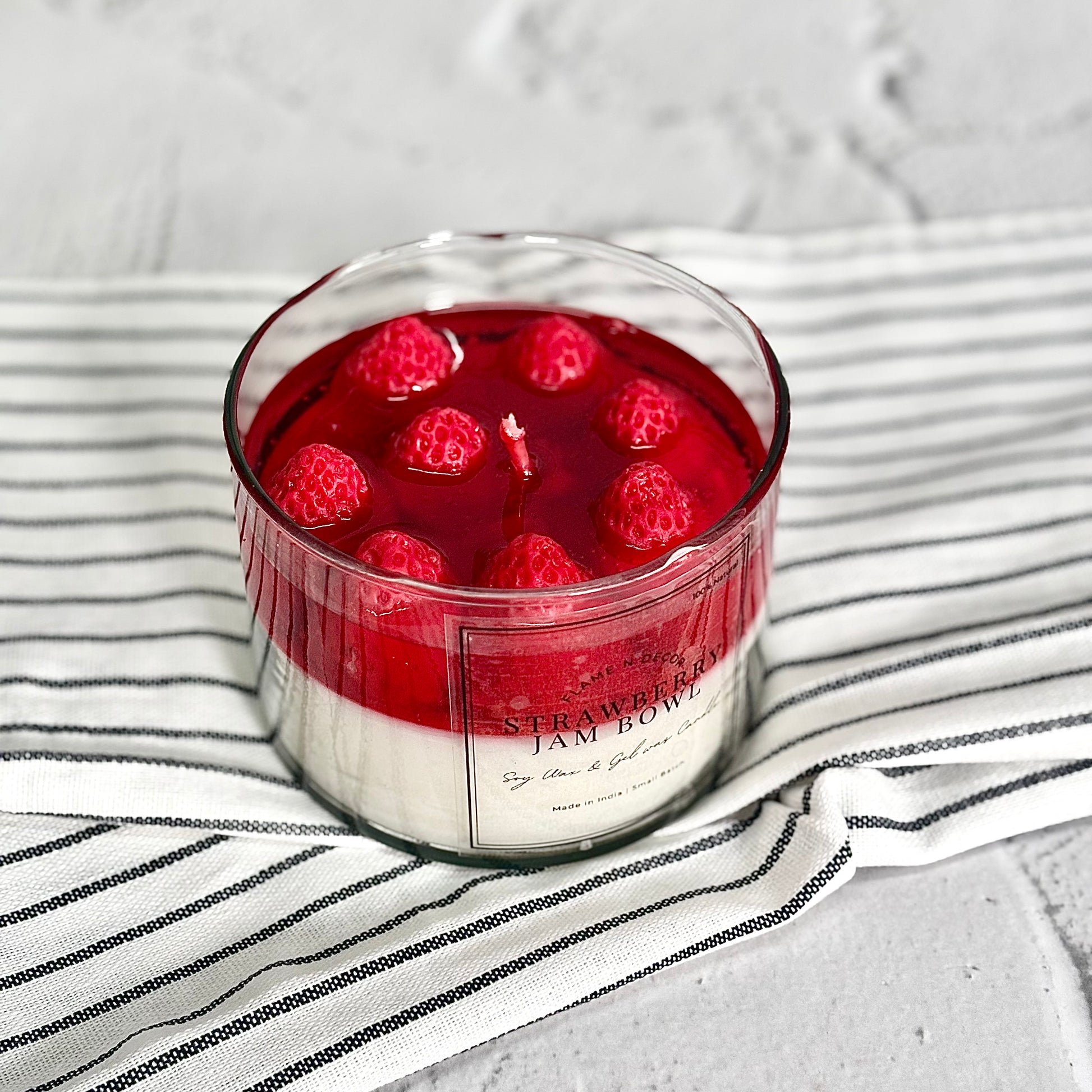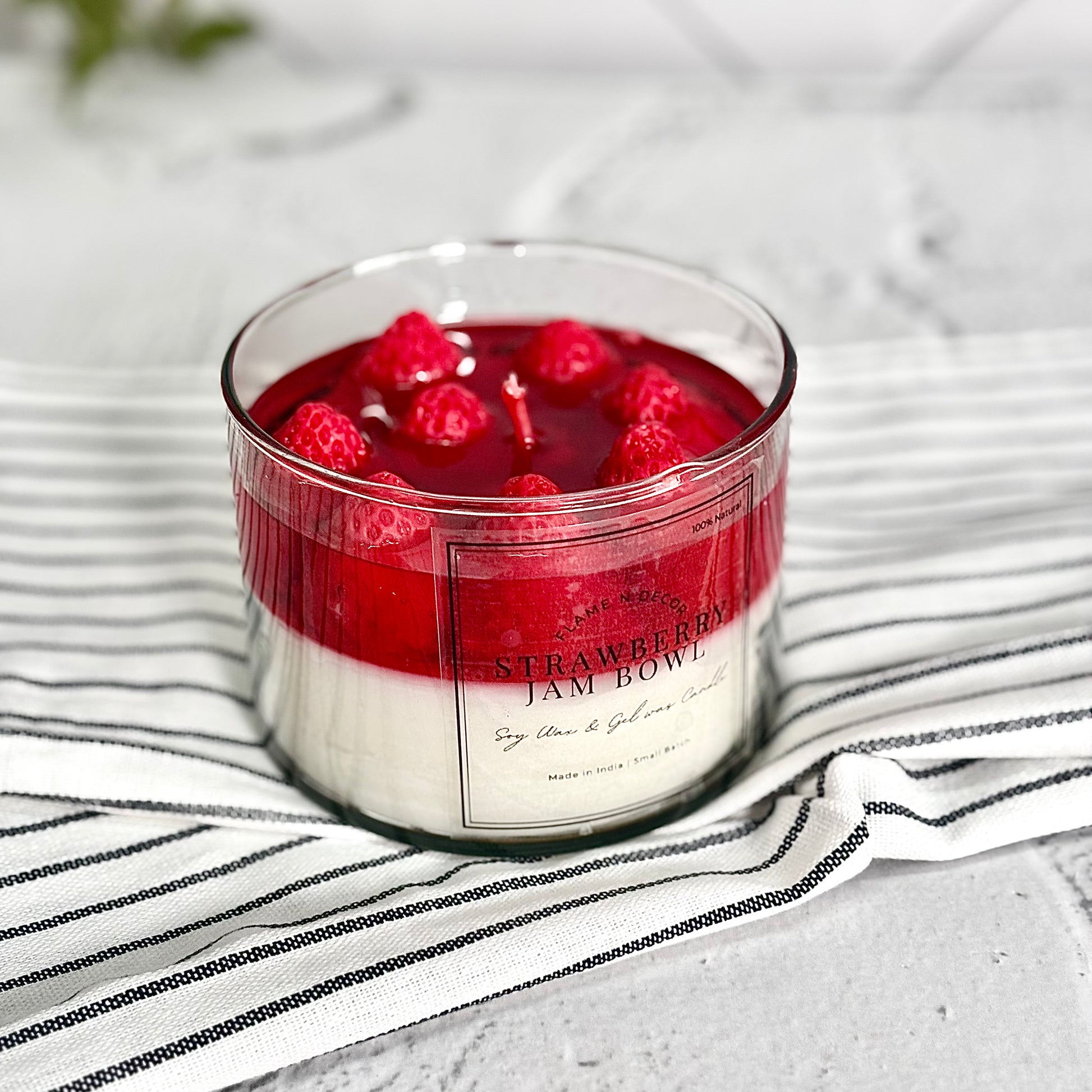 Indulge in a fruity experience with our Strawberry Jam infused with Strawberry Candle. Made with soy and gel wax, this 330 gm candle is infused with wax strawberry and a delicious strawberry fragrance. Enjoy the aroma while enjoying your jam.