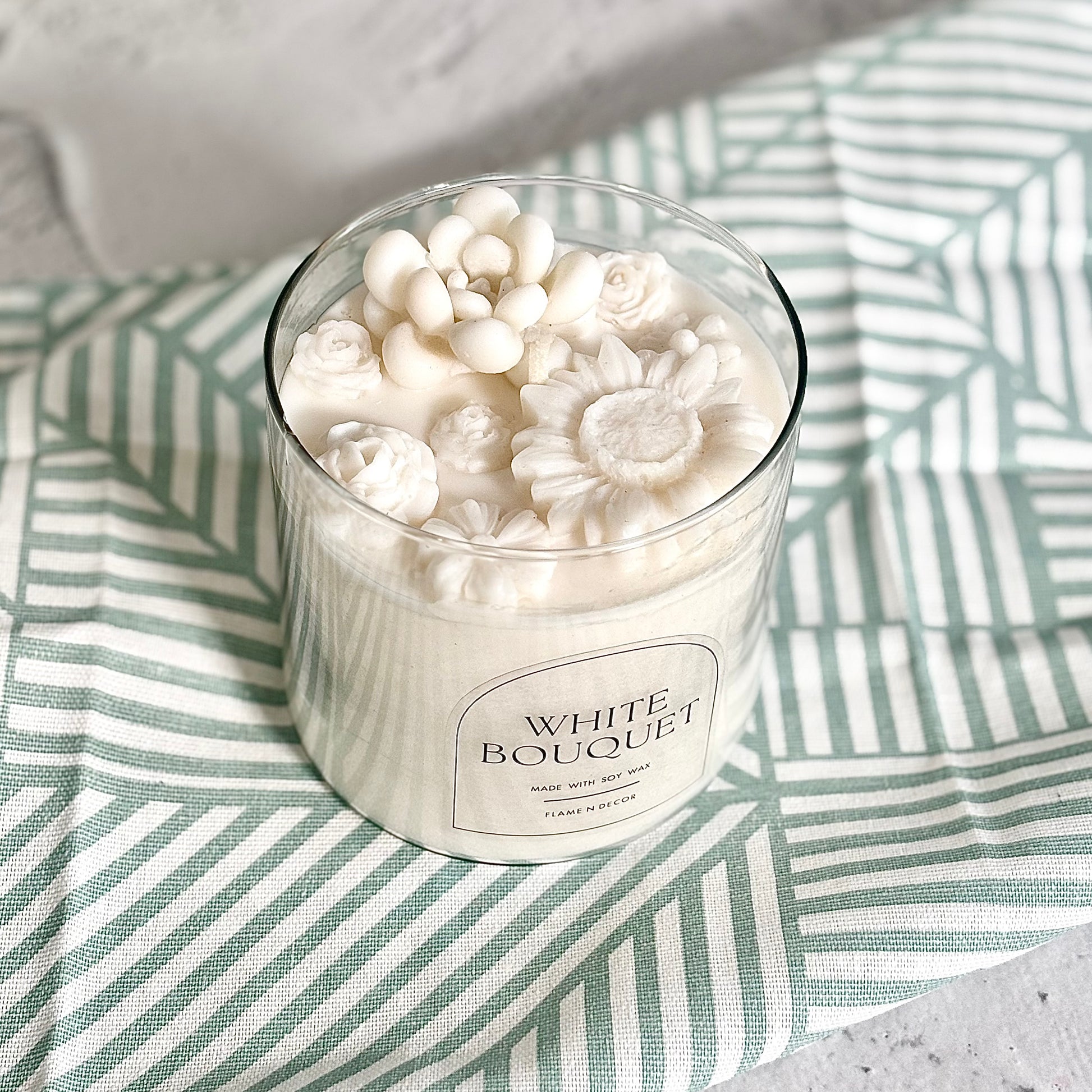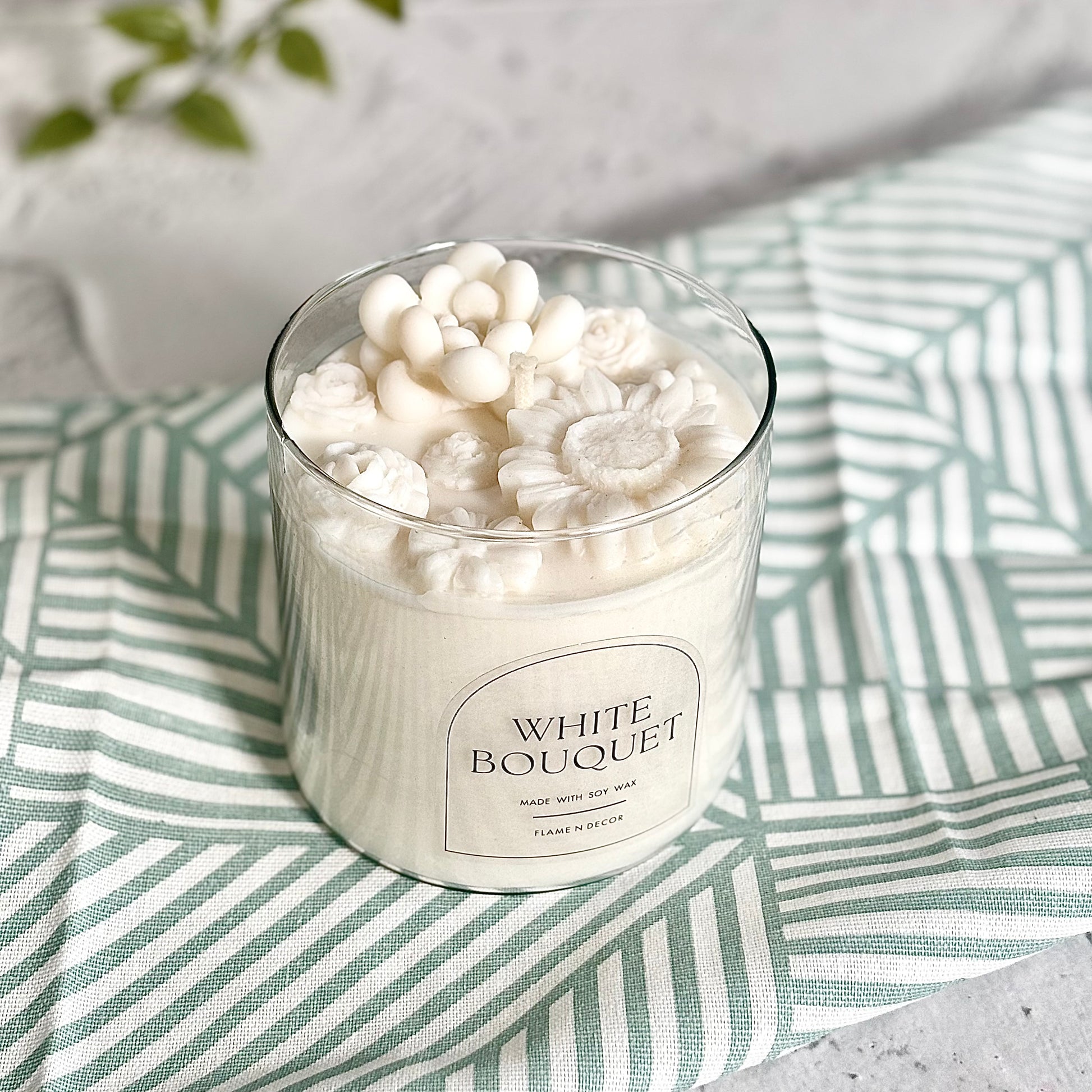 This White Bouquet Soy Wax Scented Candle features 550 gm of pure soy wax, infused with a delicate mandarin fragrance. Enhance your home with a relaxing and refreshing ambiance, while enjoying the clean burn and long-lasting scent. Perfect for adding a touch of luxury to any space.