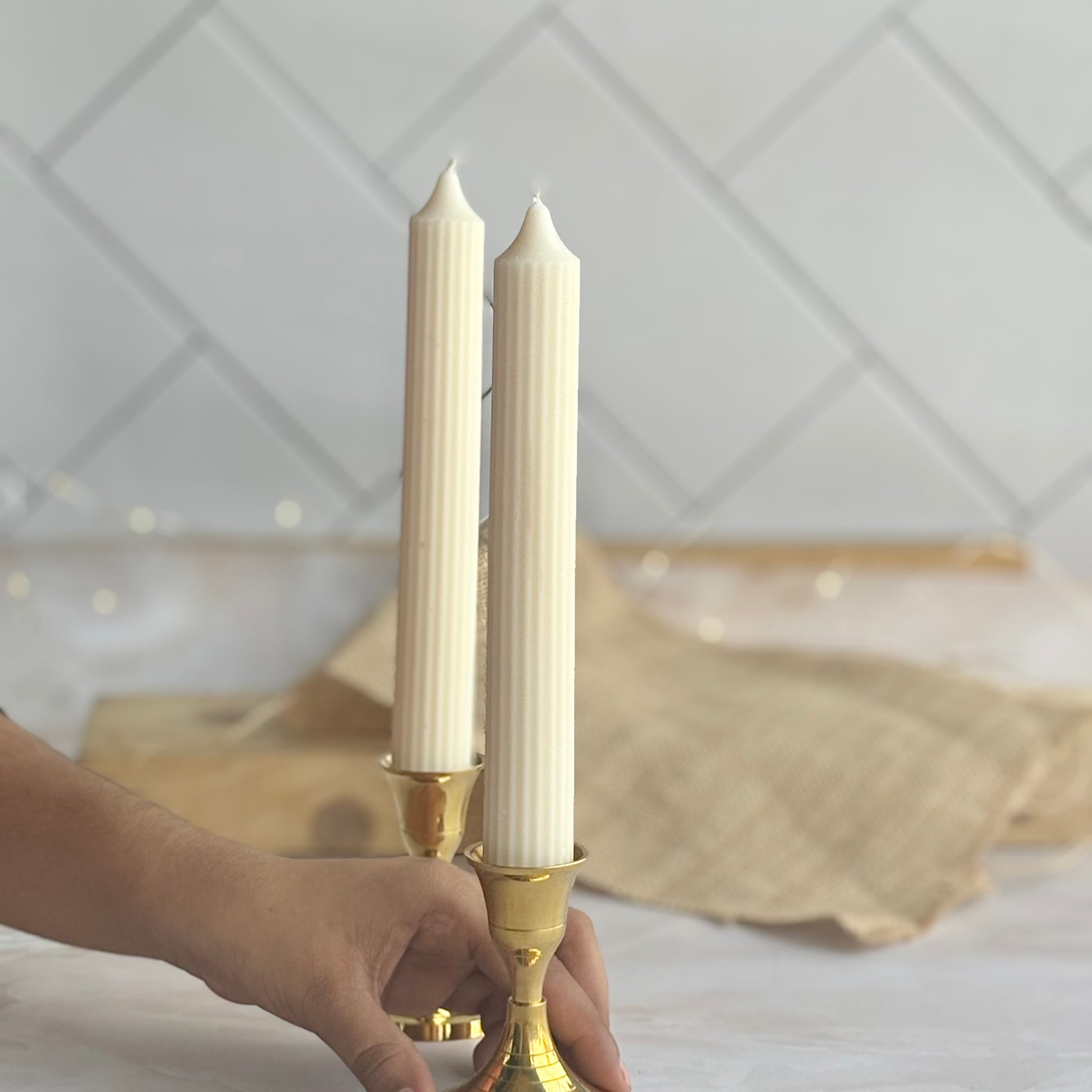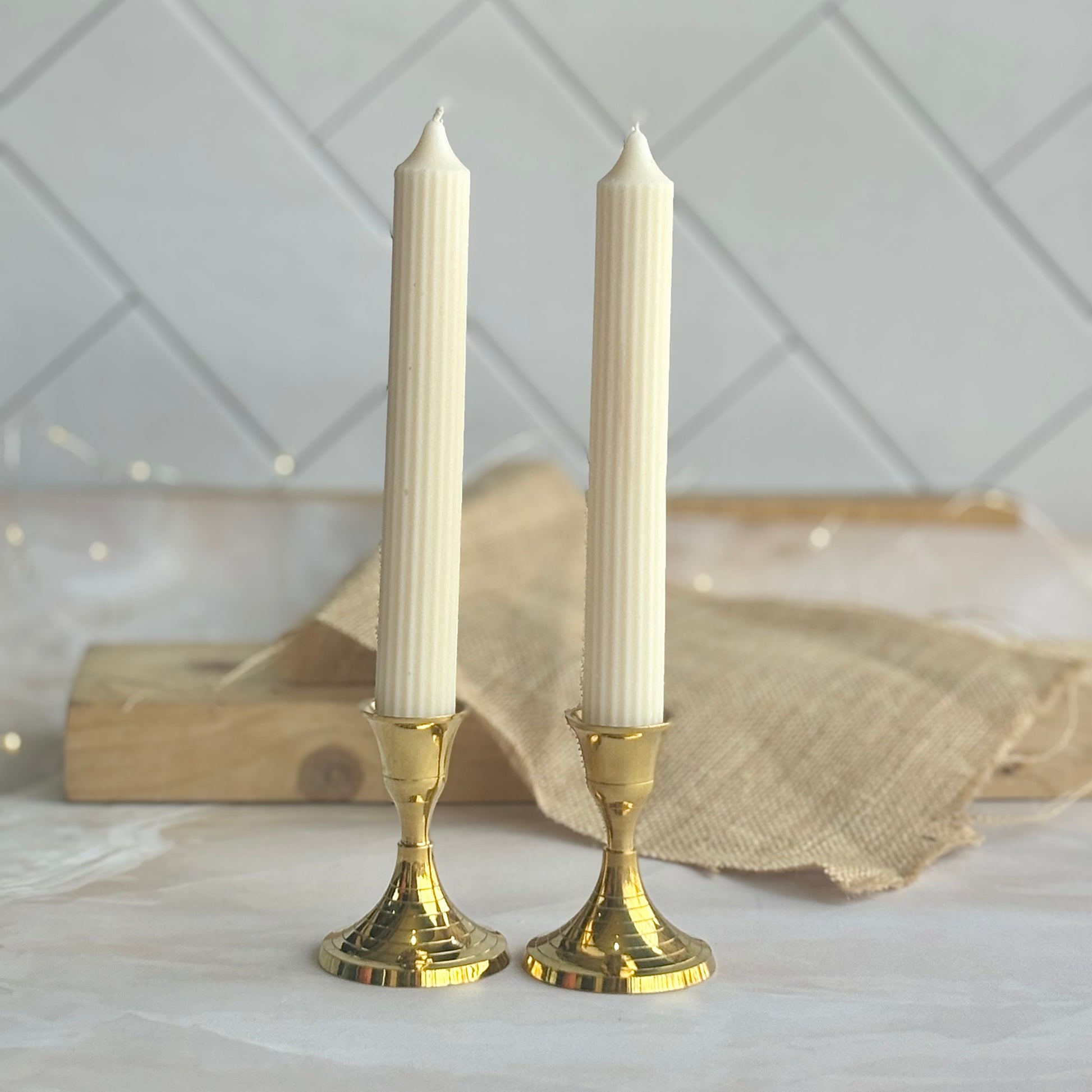 White Medium Texture Taper Soy Candle | Pack of 2