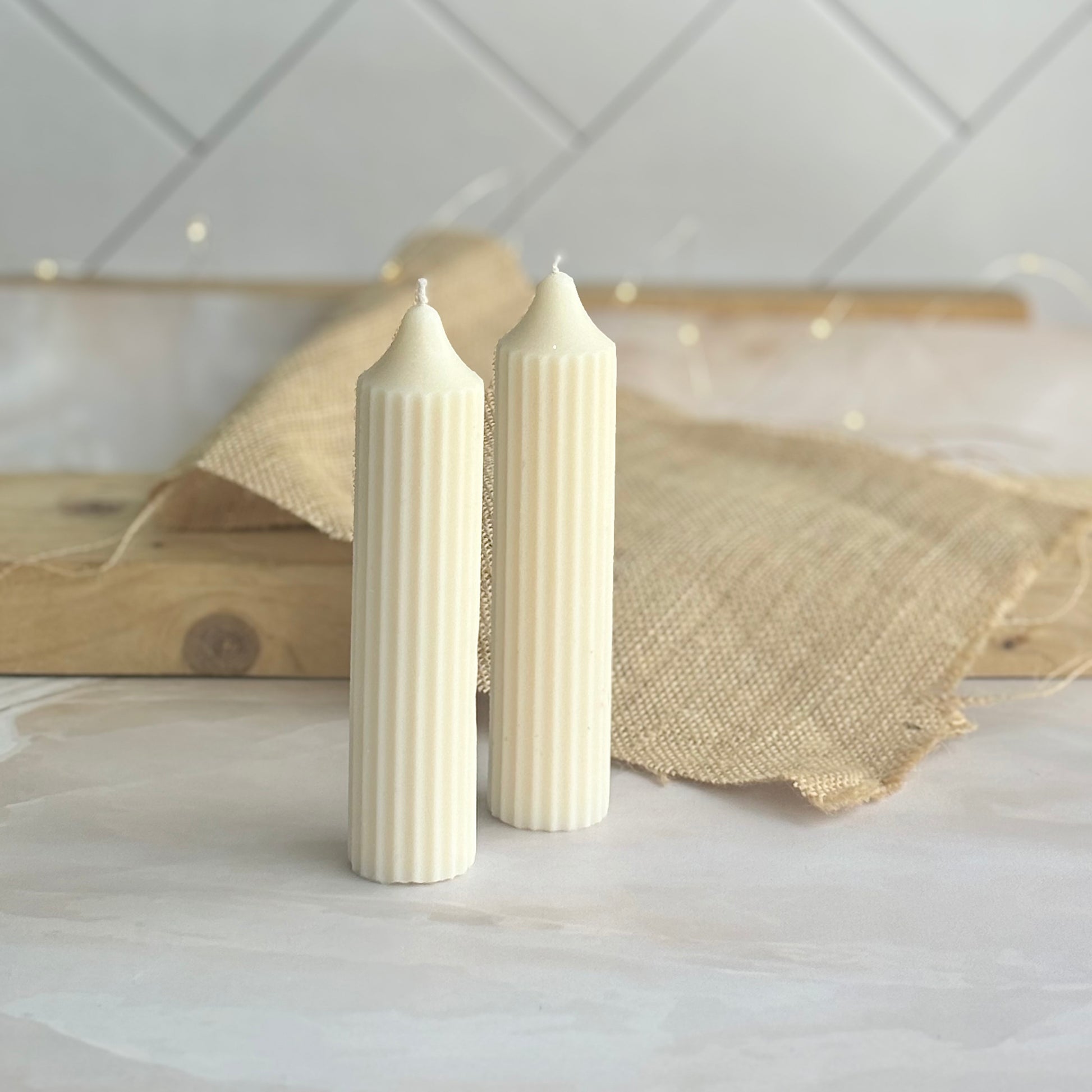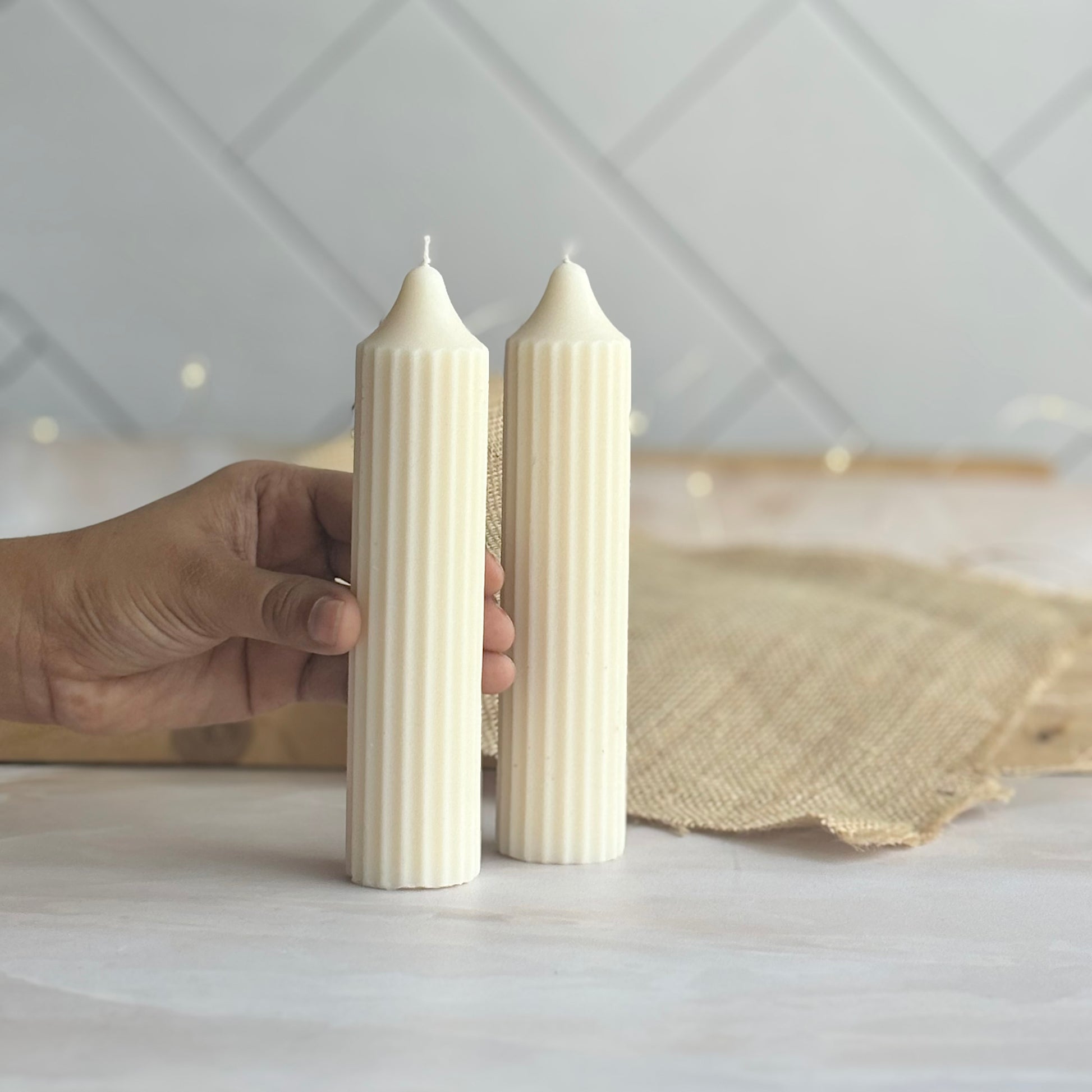 White Medium Textured Taper Scented Soy Candle | Pack of 2